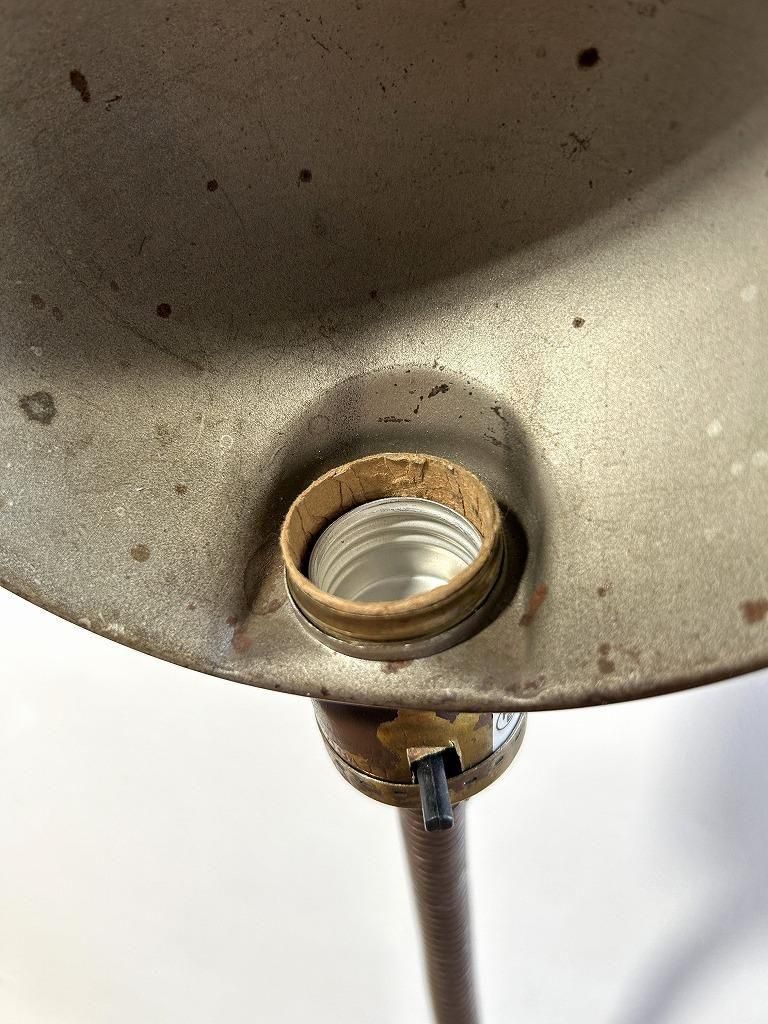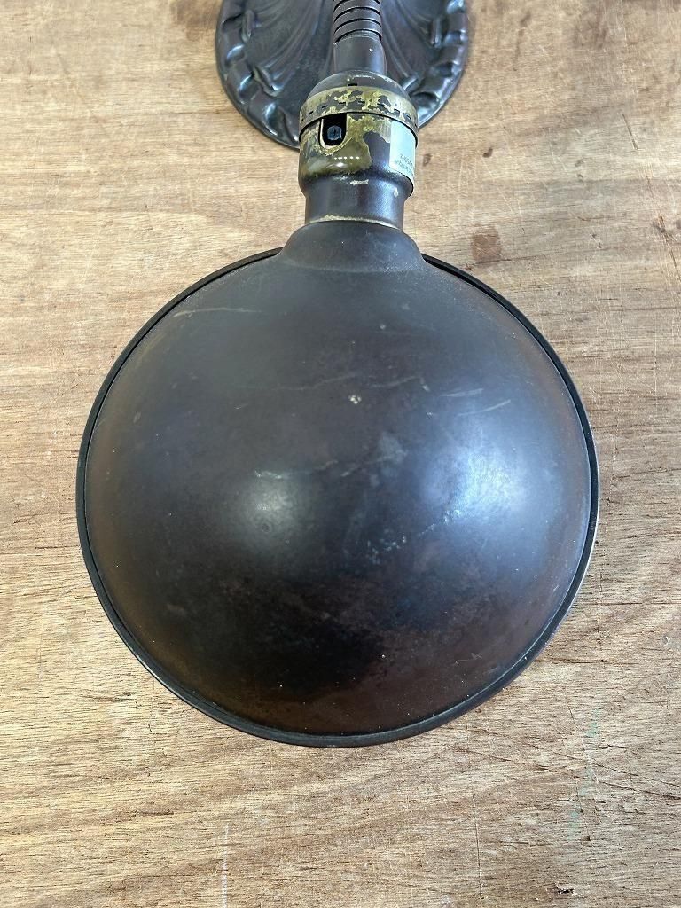 ドーム型メタルシェードで、光を狭い範囲に集中させる構造。経年の剥がれや黒鉄のようなメタルの鈍い光沢から、インダストリーな雰囲気が漂い非常に魅力的です。
