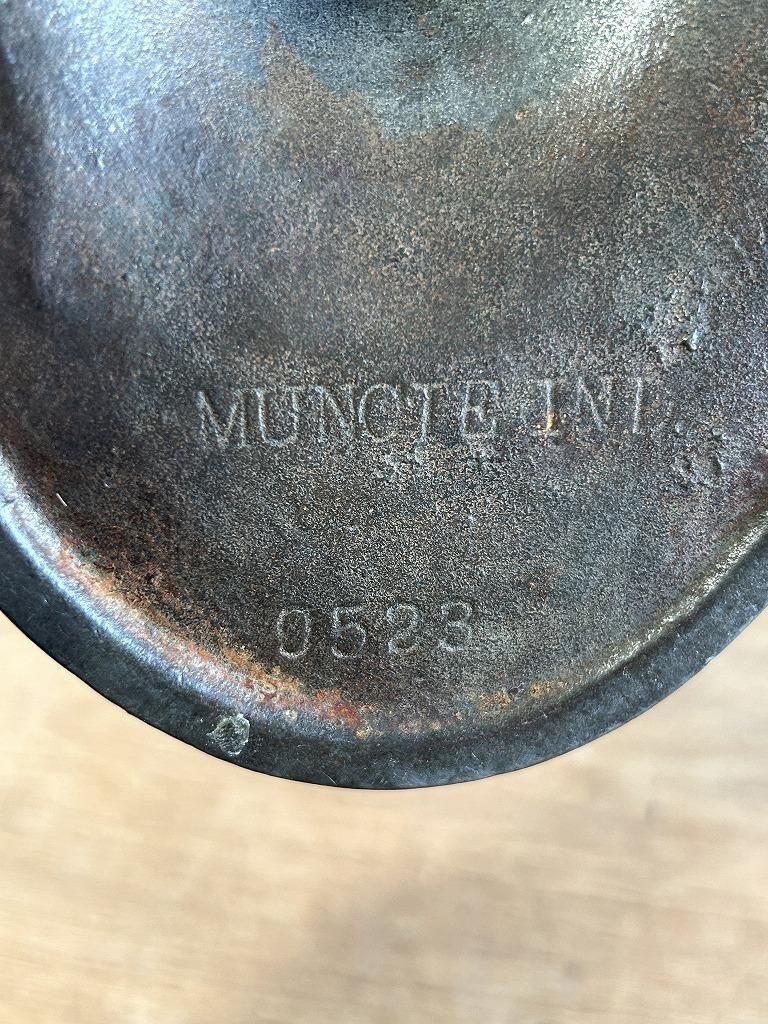裏面には、MUNCIE IND(インディアナ州マンシー)と刻印があり、1920-30年代のアメリカ鋳鉄製造の典型的な地名刻印となっています。