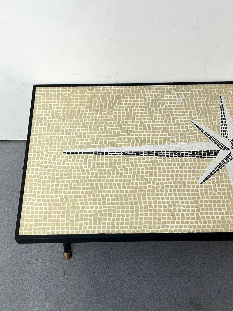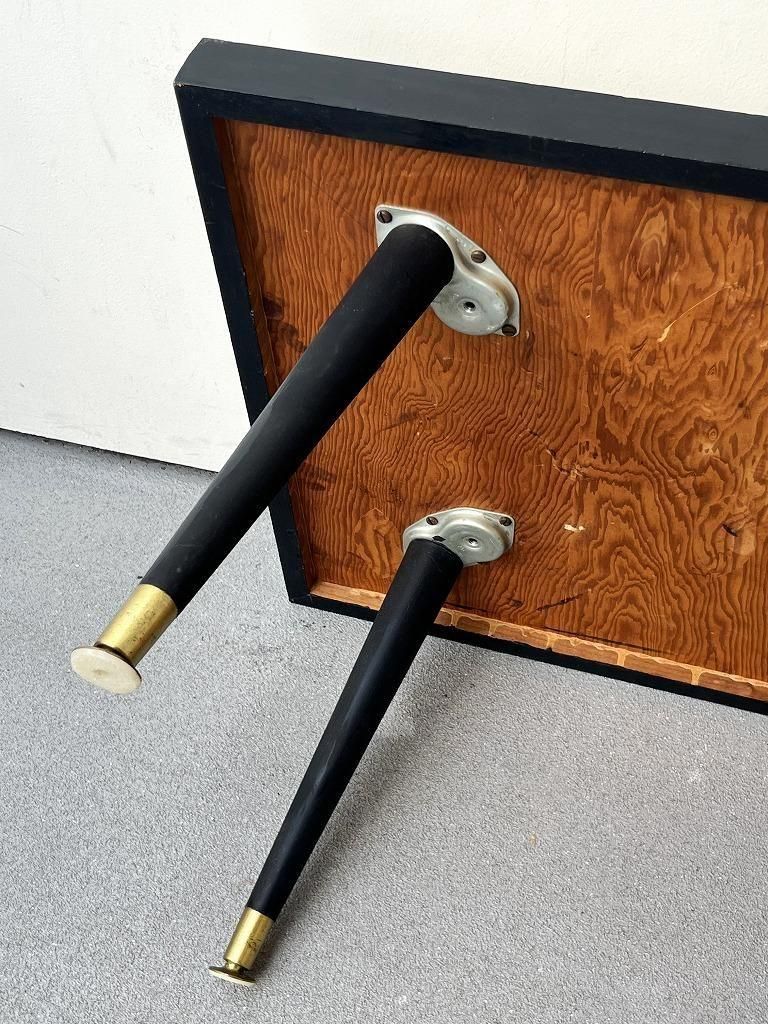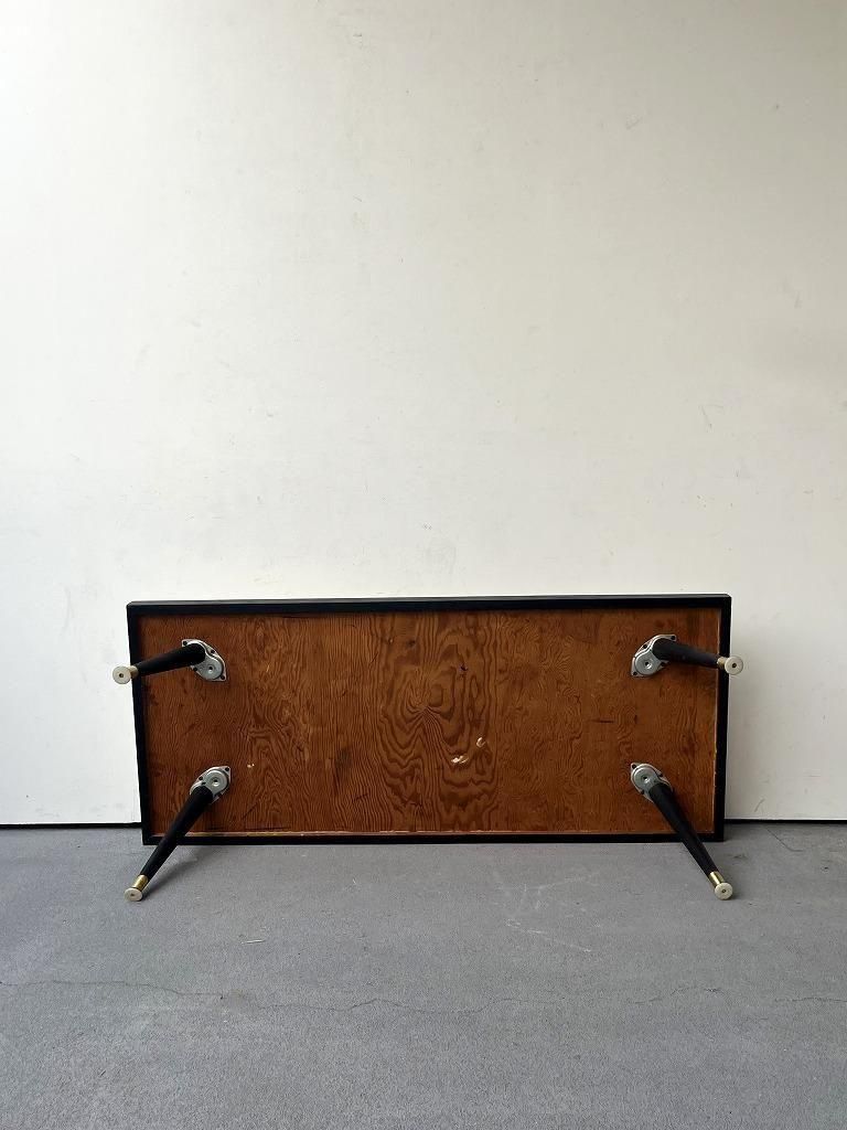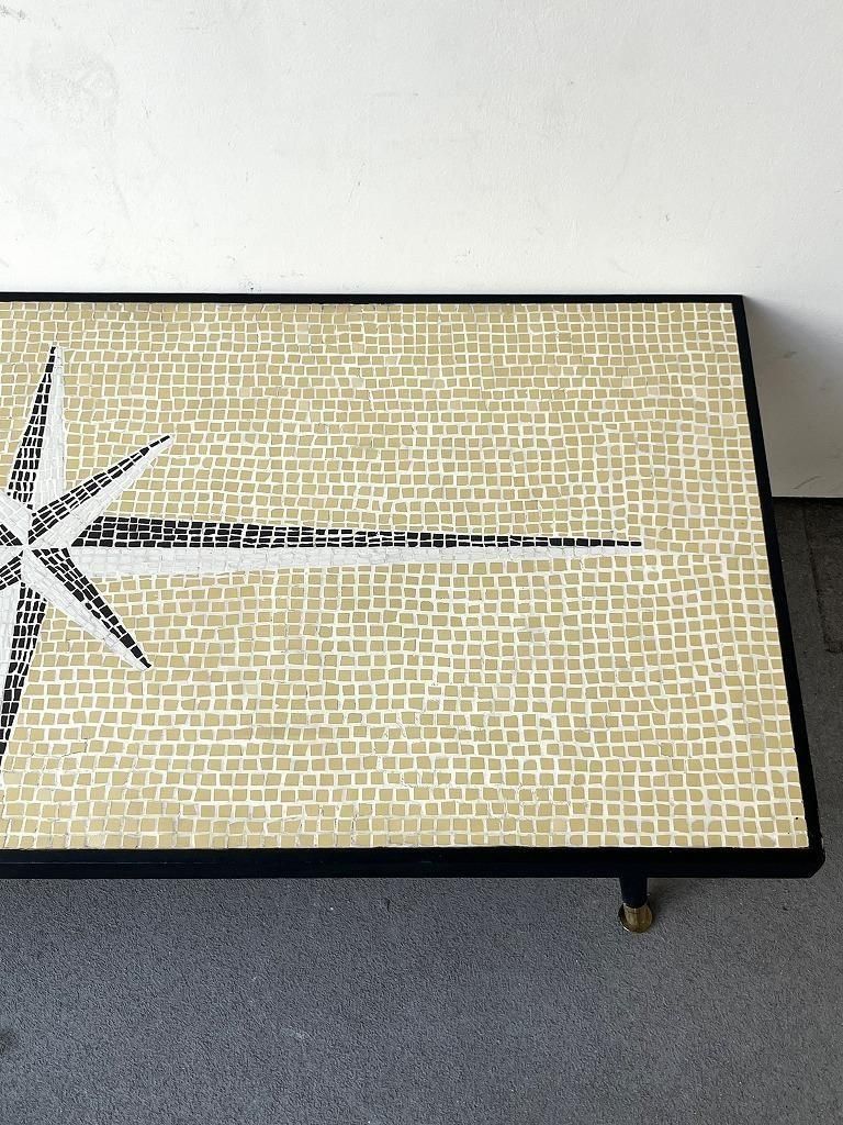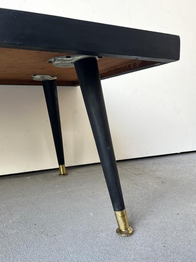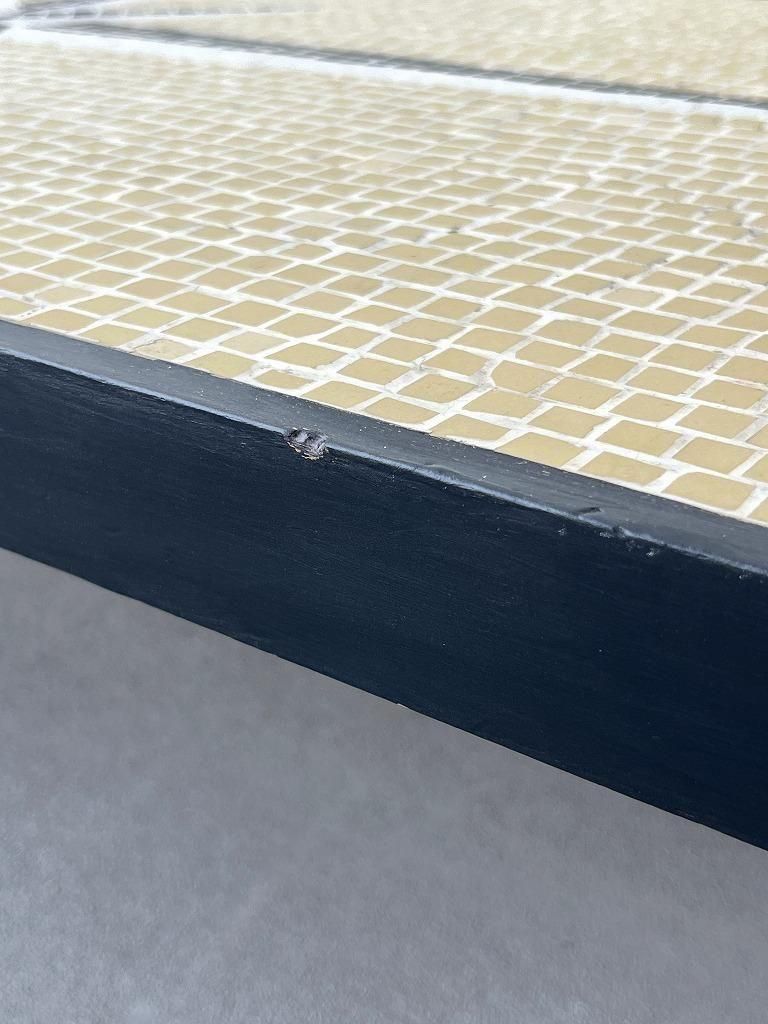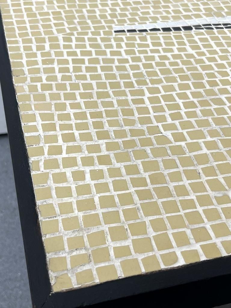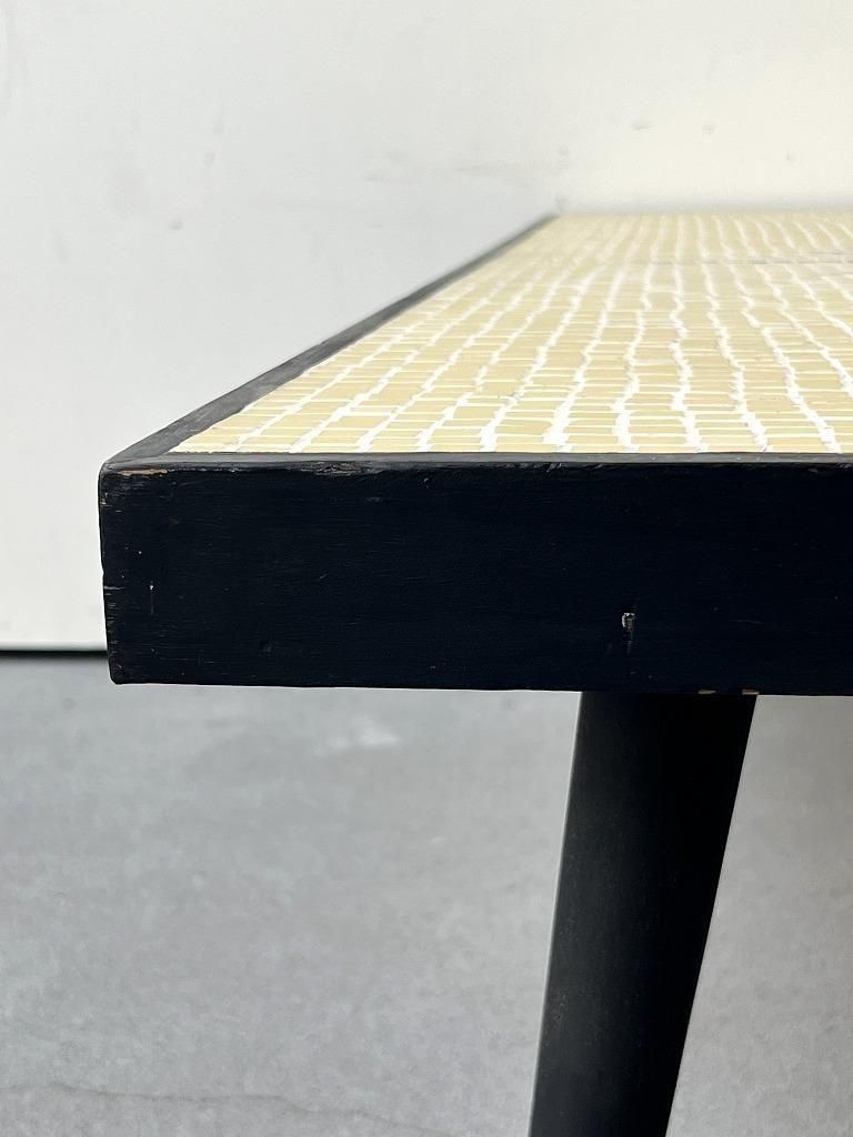 当時流行したモザイクタイル天板と、細身のテーパードレッグを組み合わせた、ミッドセンチュリー期の典型的なスタイルの一台。