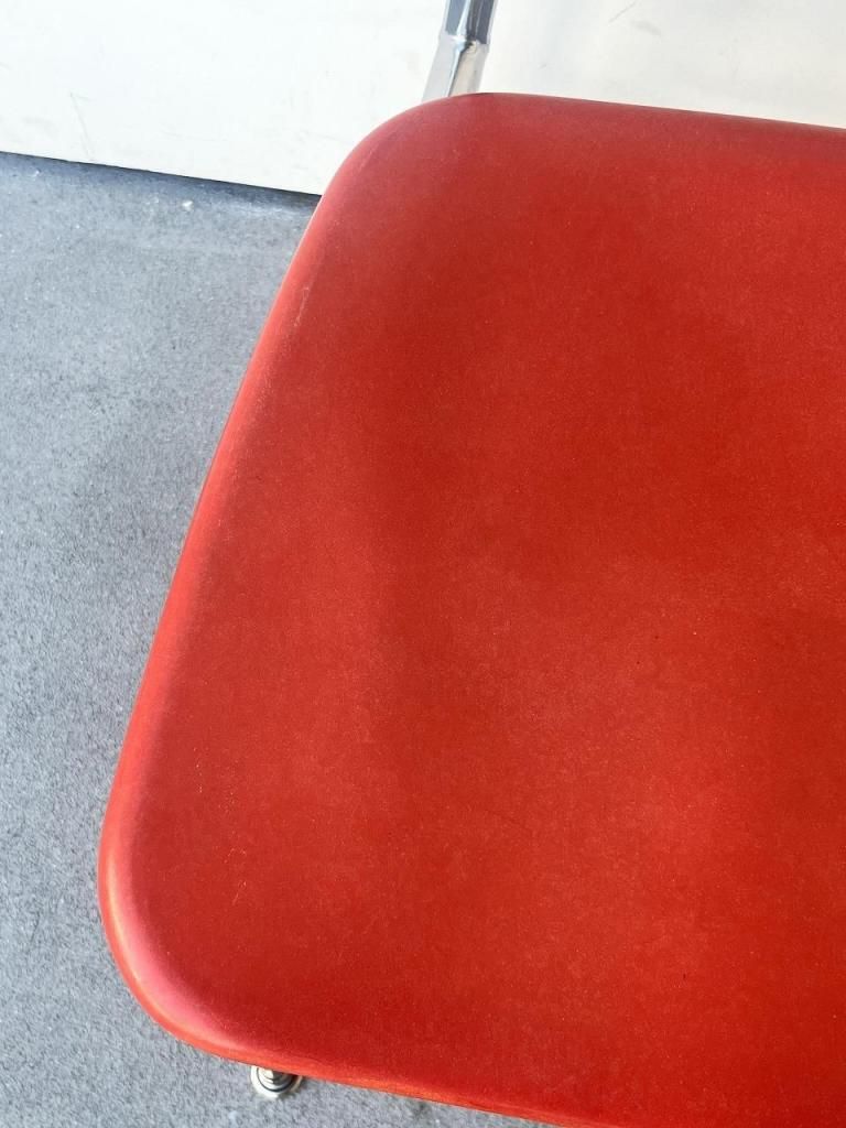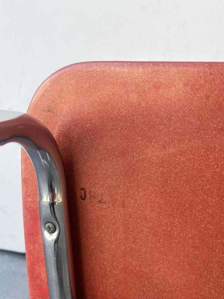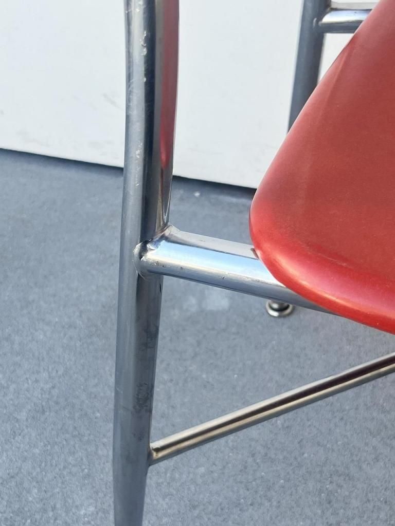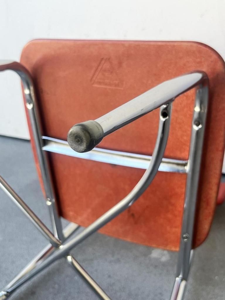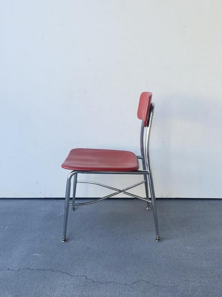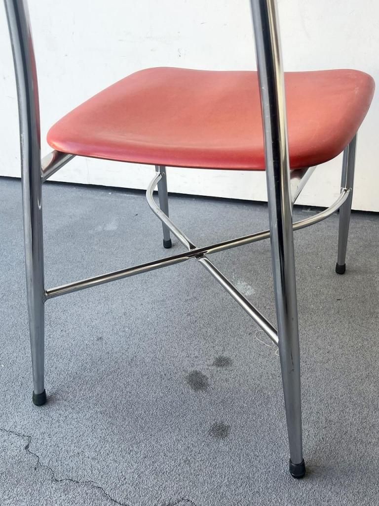 脚部にはクロームメッキのスチールパイプを採用し、座面下の美しくカーブを描いたX字補強など、当時のタフな構造も魅力です。