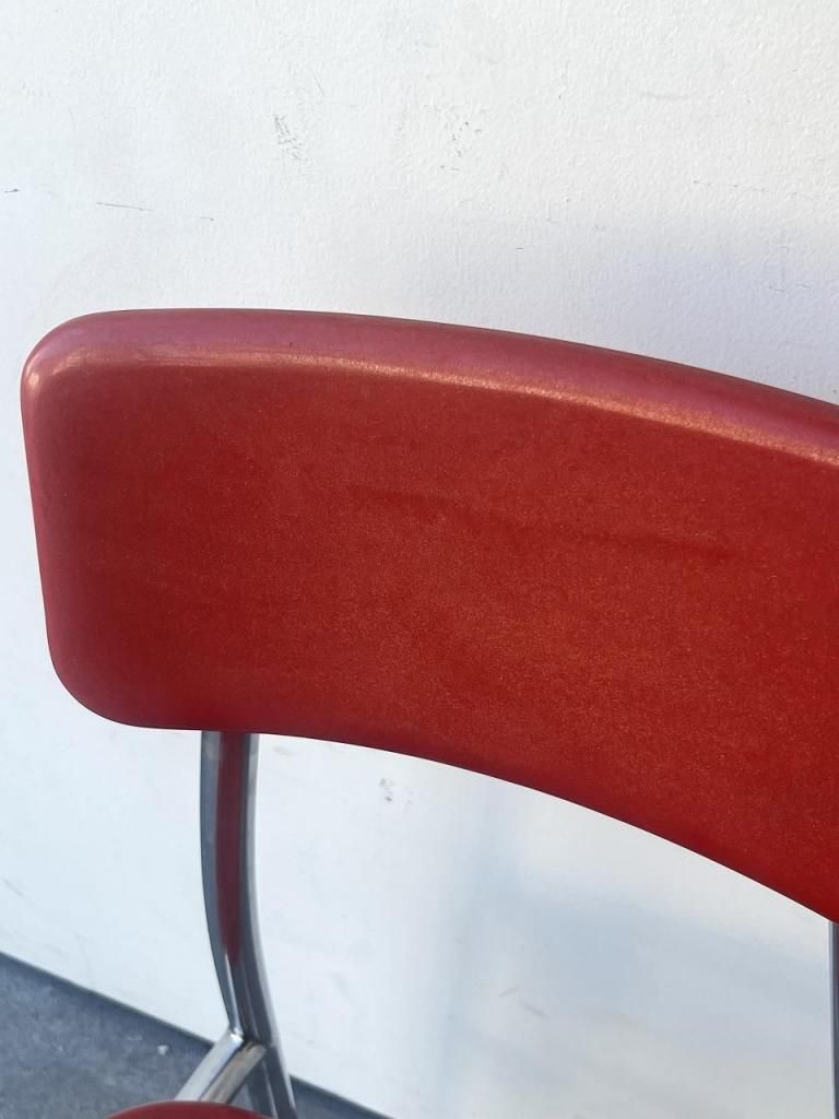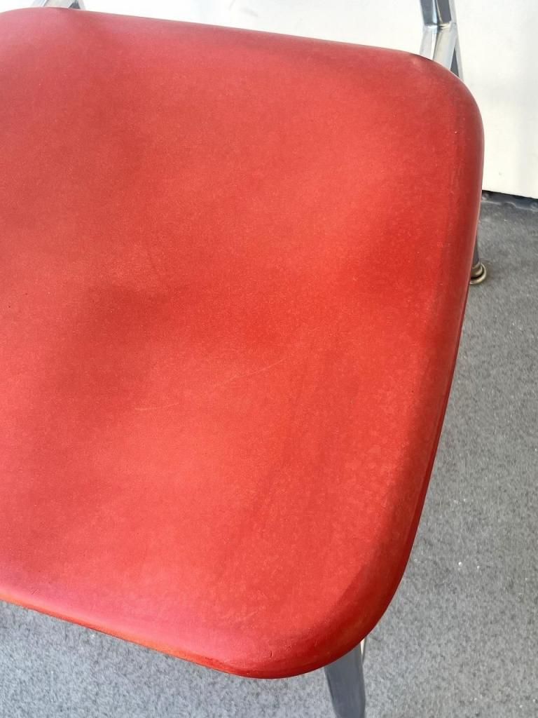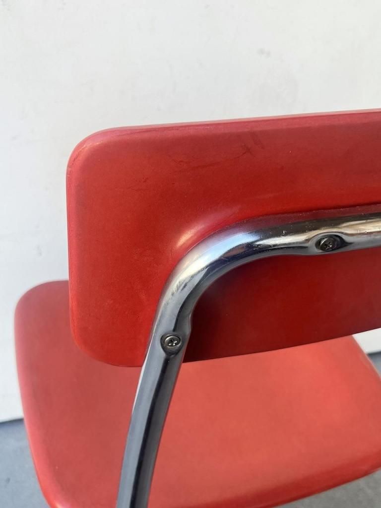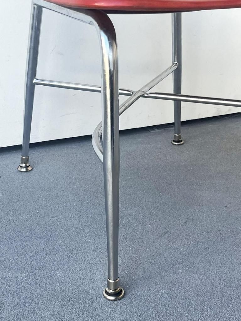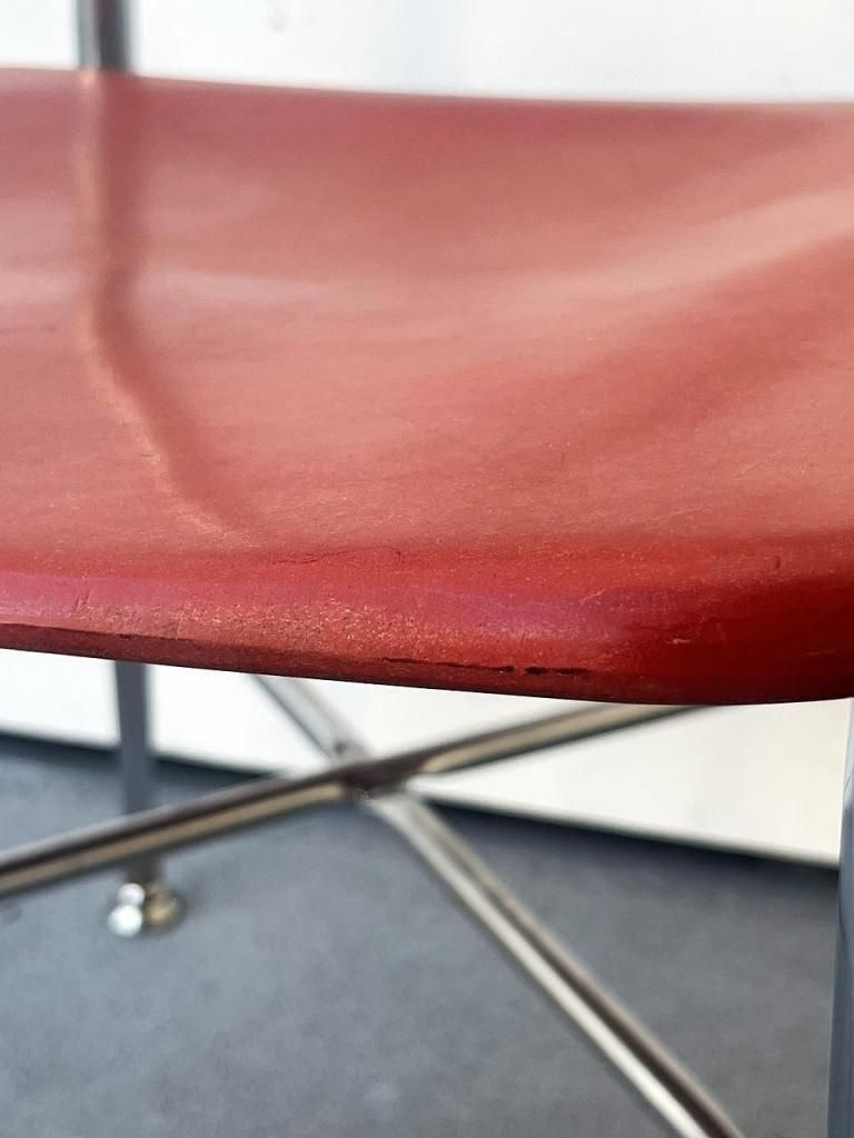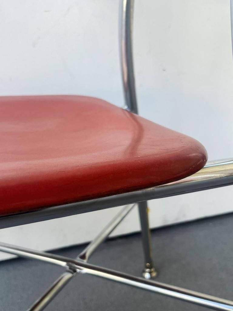 脚部にはクロームメッキのスチールパイプを採用し、座面下の美しくカーブを描いたX字補強など、当時のタフな構造も魅力です。