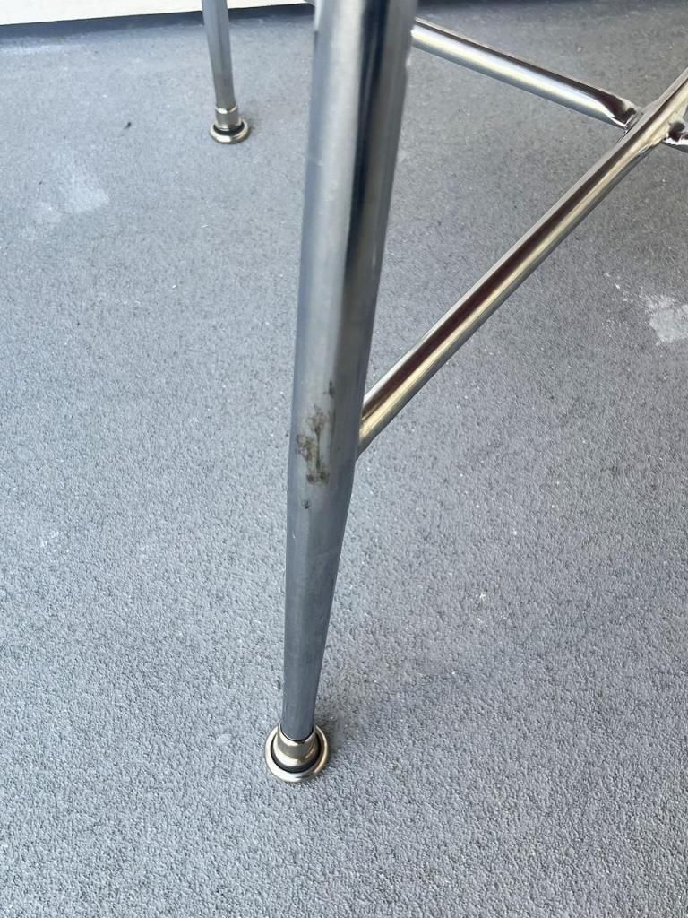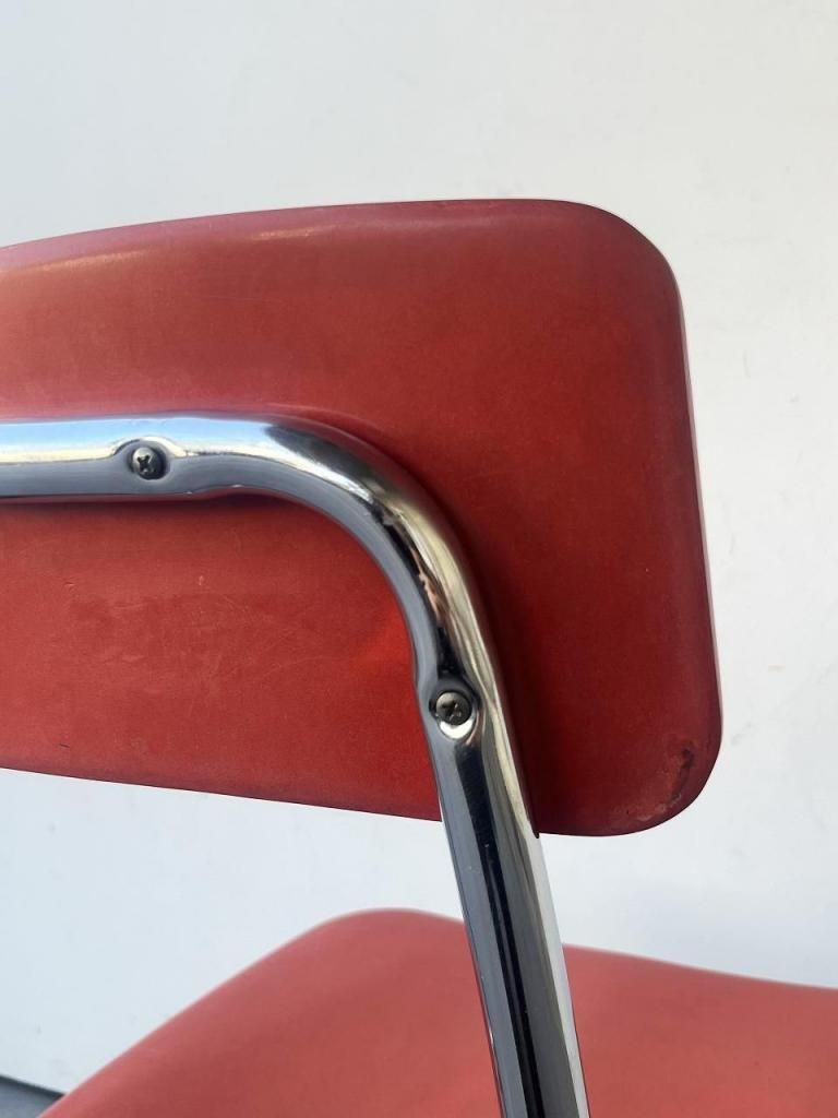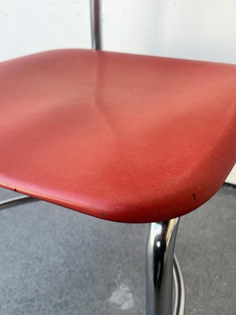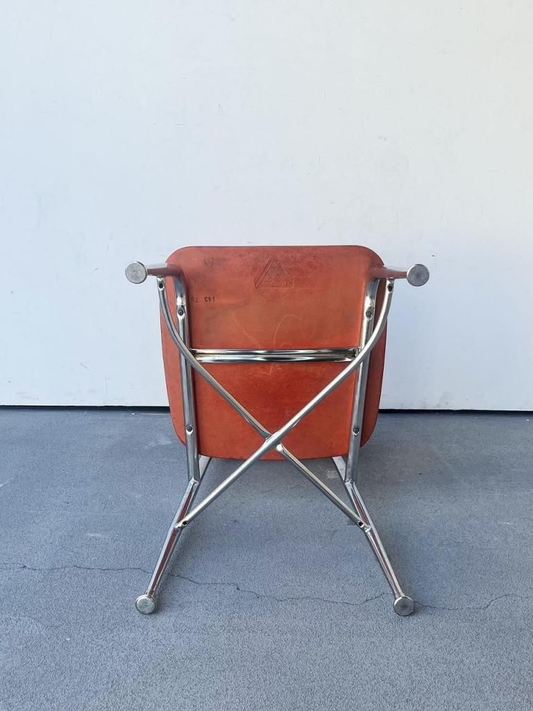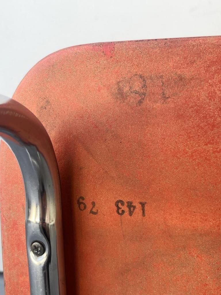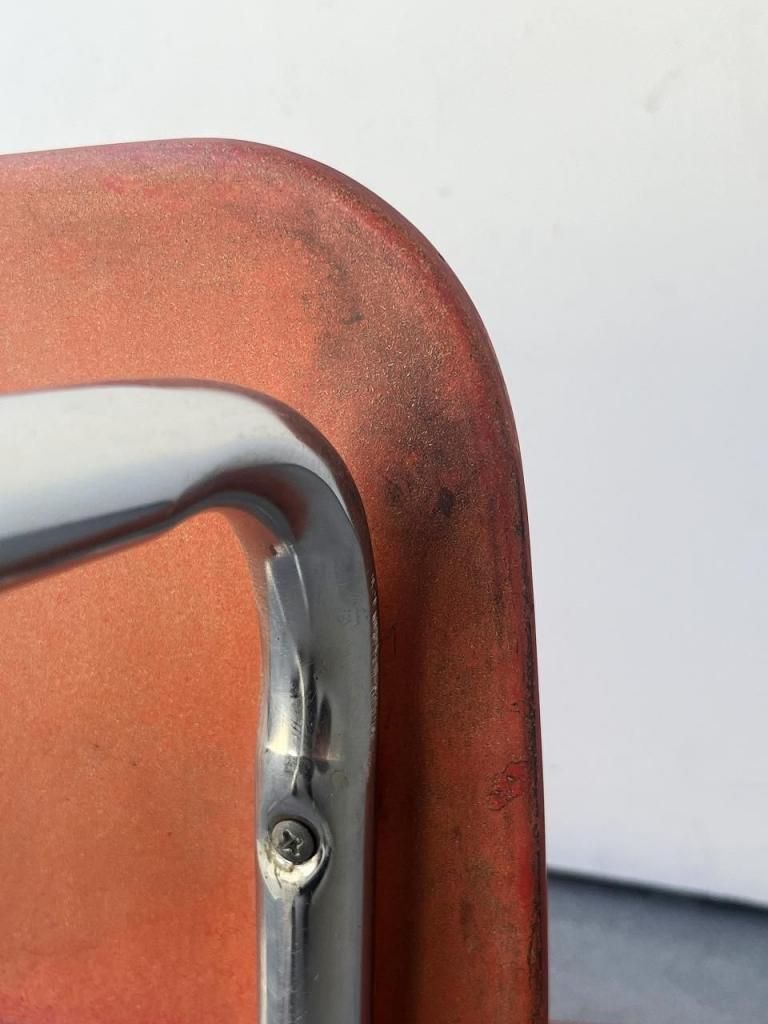 脚部にはクロームメッキのスチールパイプを採用し、座面下の美しくカーブを描いたX字補強など、当時のタフな構造も魅力です。