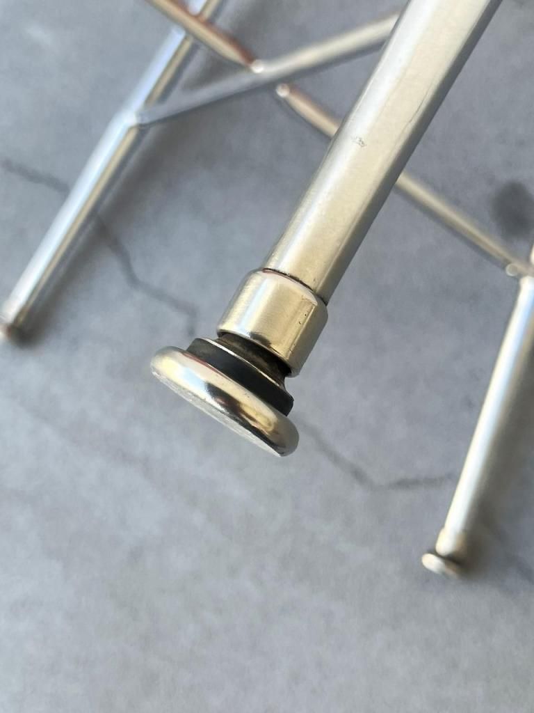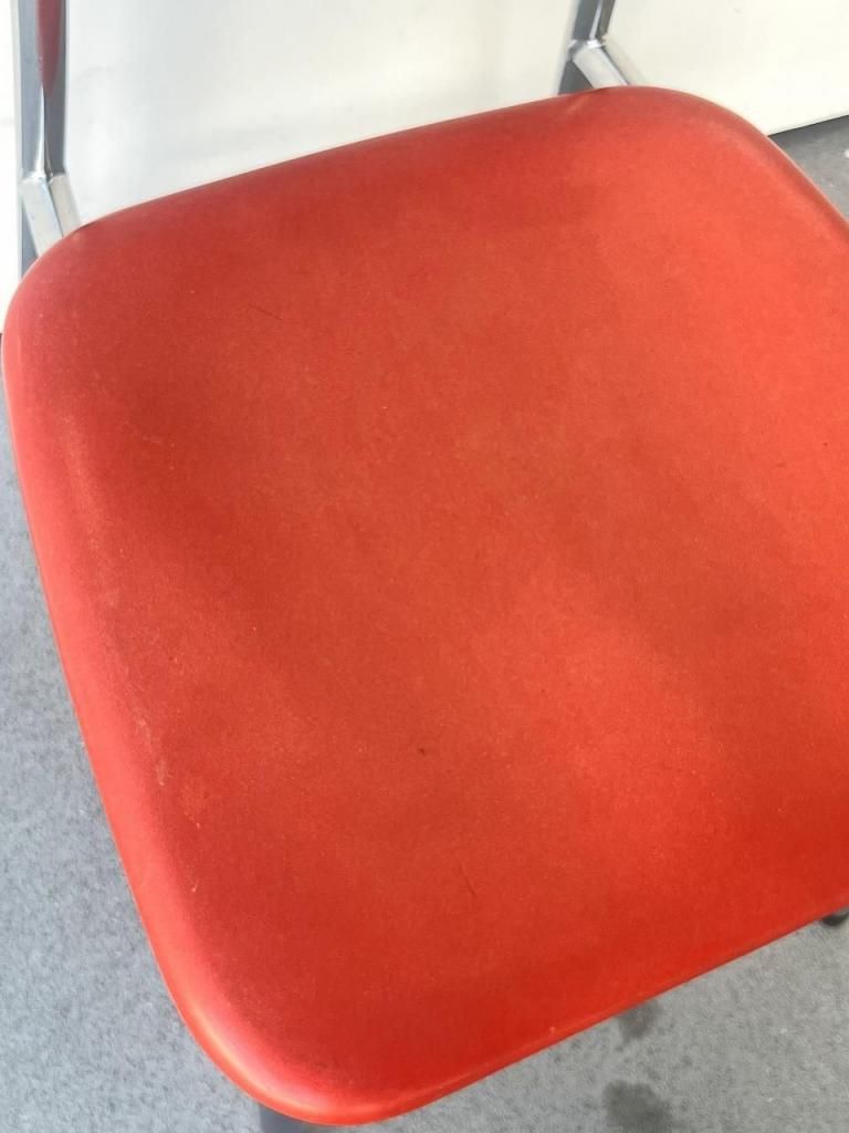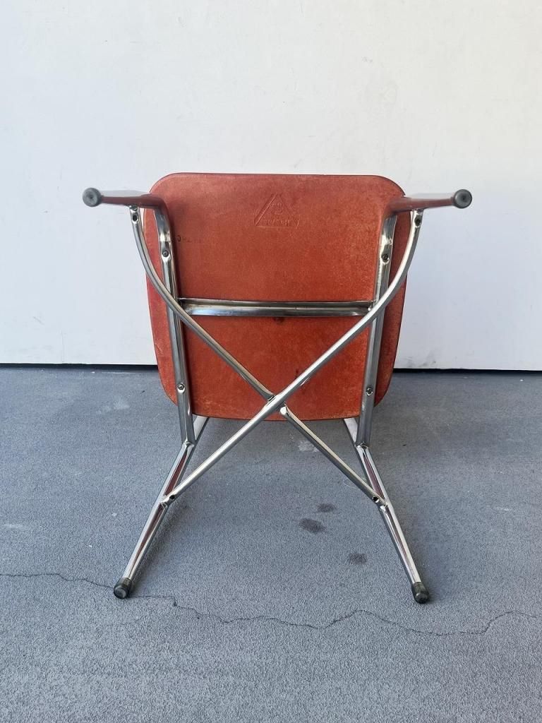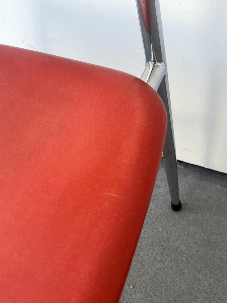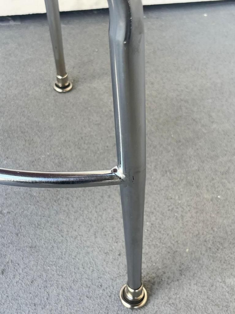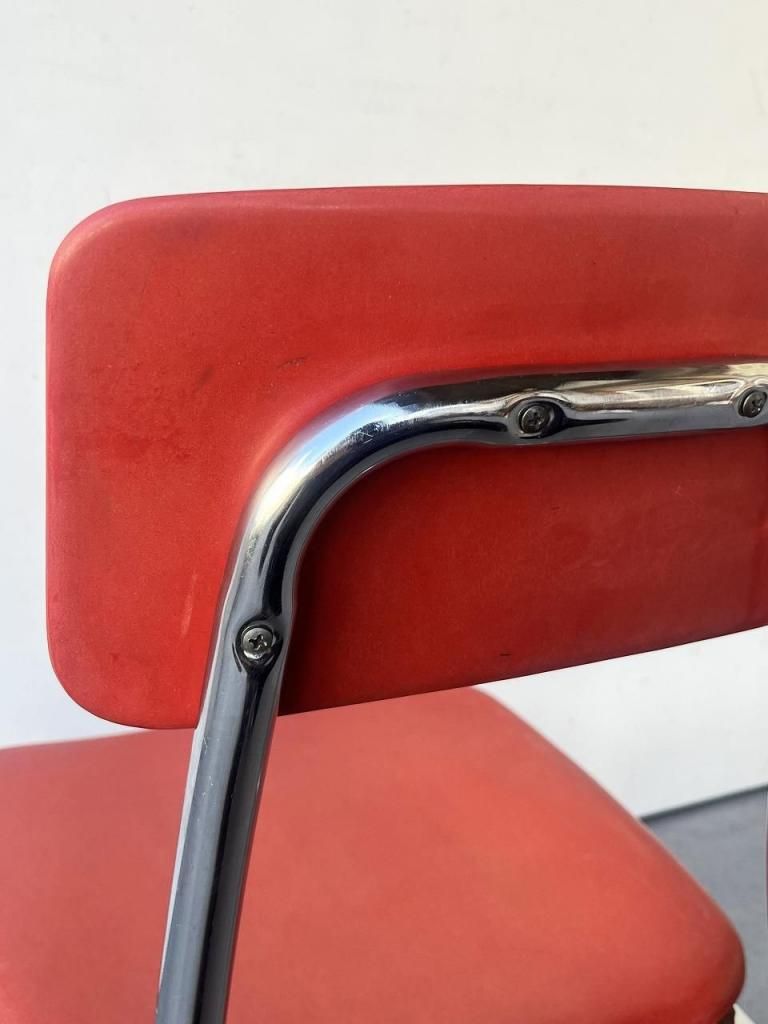 脚部にはクロームメッキのスチールパイプを採用し、座面下の美しくカーブを描いたX字補強など、当時のタフな構造も魅力です。