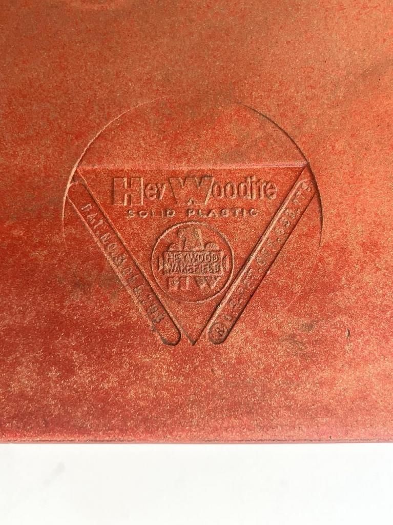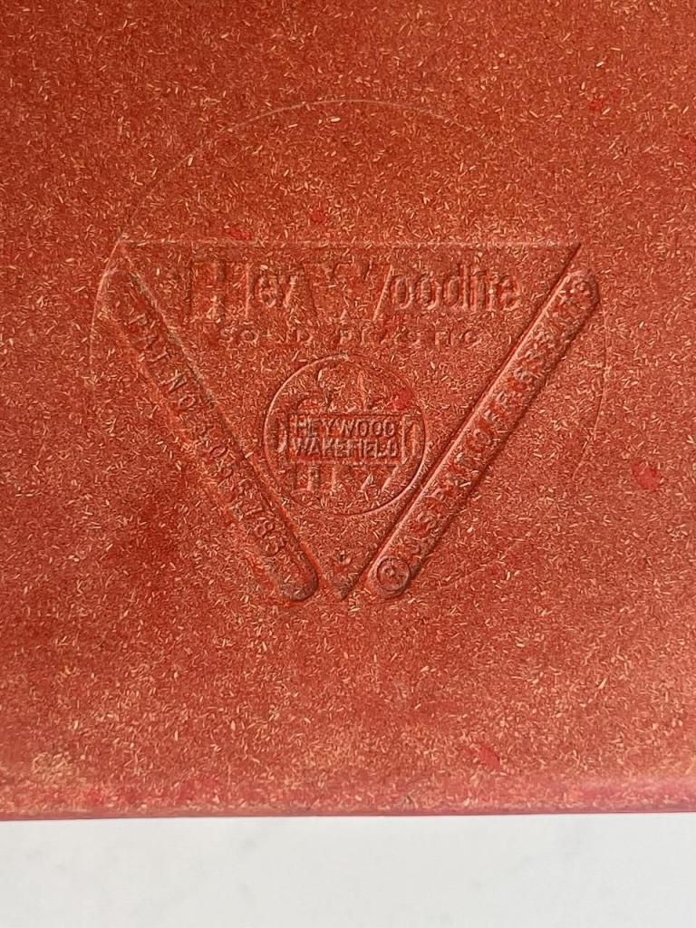 1948年に発表され、1955年に素材とモデルが刷新されるため、この初期 HeyWooditeシリーズは現存数が少なく、シート裏に刻印がしっかり残る個体は特に希少です。