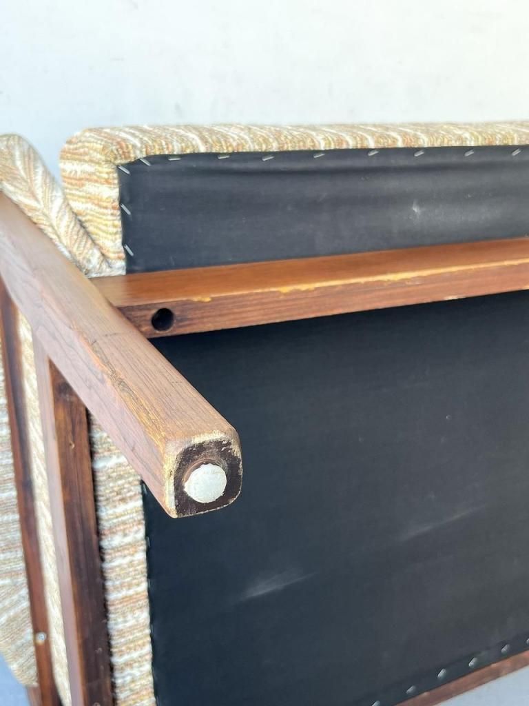 素材の扱いやすさ、ウッドフレームの温かみ、そして当時らしい柄表現の面白さが詰まったおすすめのソファです。