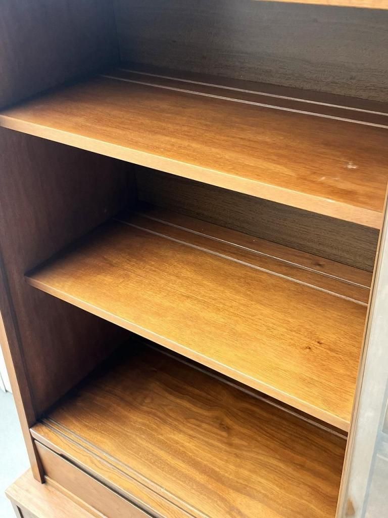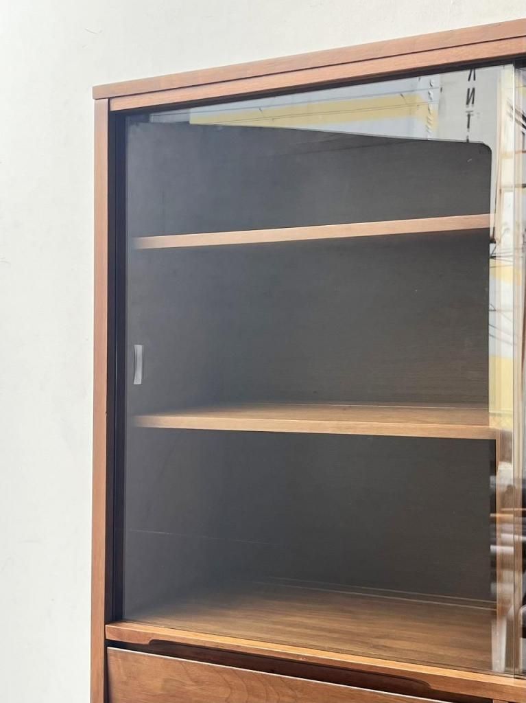 上部はガラス戸の飾り棚、下部は大型収納。見せる収納と隠す収納が同時に成立する実用的な造り。大容量収納の中にも細かく仕切りがあったりと、使い手のことを良く考えられた設計が非常に魅力的です。