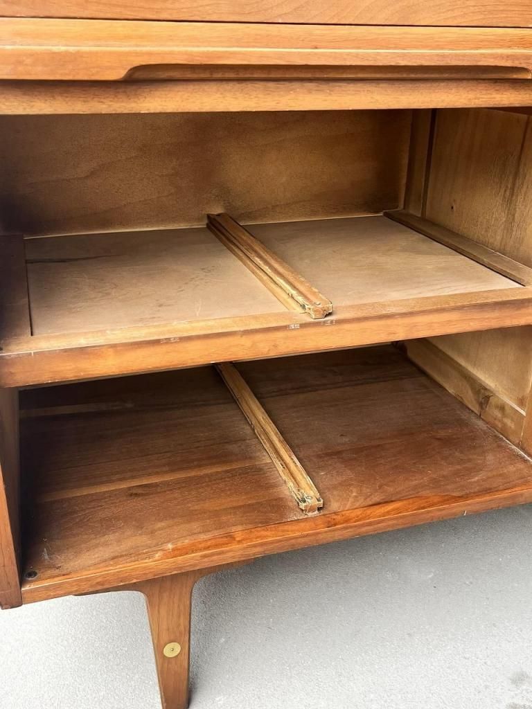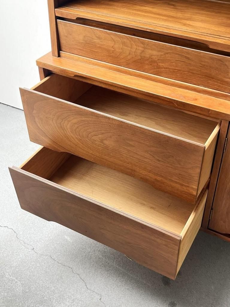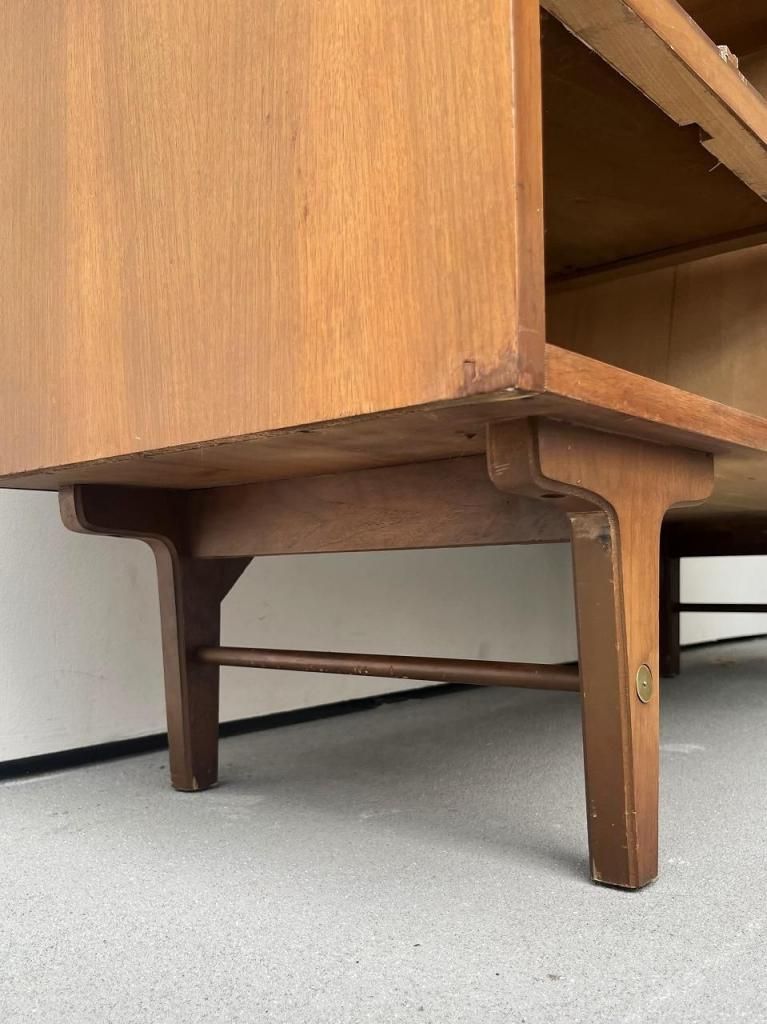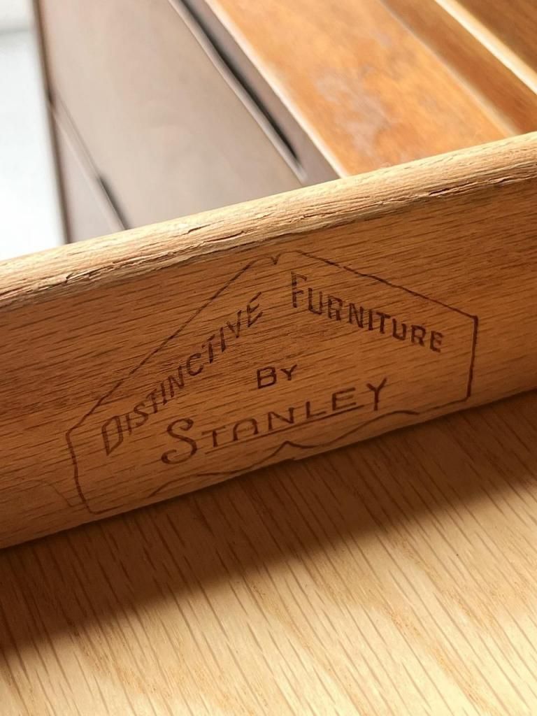 Stanley Furniture(スタンレー社)は、1924年創業のアメリカ・ノースカロライナの家具メーカーで、家具の質の高さで知られた老舗メーカーです。主にソリッドウッド家具、ミッドセンチュリーモダン家具を多く生産し、1950-60年代にはアメリカ中流階級の「良質な家庭用家具ブランド」として人気を確立しました。