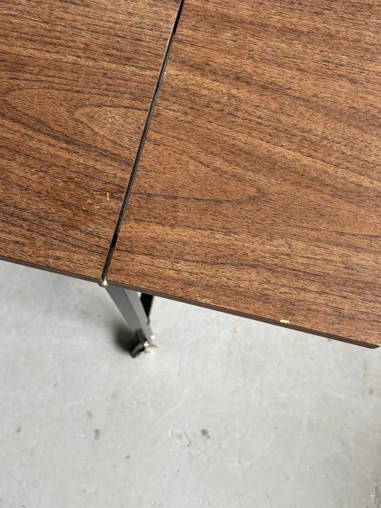 軽く上に持ち上げると天板の両側が折りたためるバタフライタイプ。