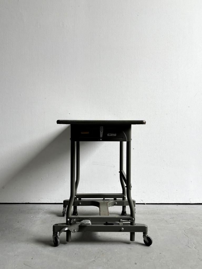 タイプライターや初期のワープロ端末を載せる前提で作られたため、高さは低めでちょっとした読み書きデスクや、軽量な小物等を飾ってディスプレイ台など、幅広くお使いいただける人気のアイテムです。
