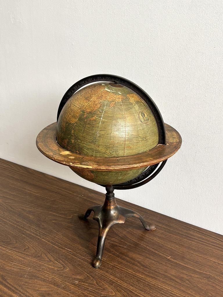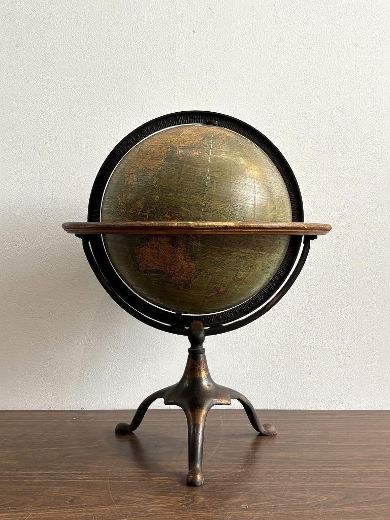 近年は市場でもほとんど見られなくなった、1900年代初頭・アメリカ製の本格アンティーク地球儀。ディスプレイ什器としてはもちろん、空間に時を超えた重厚感を取り込むアートピースとしてもおすすめです。