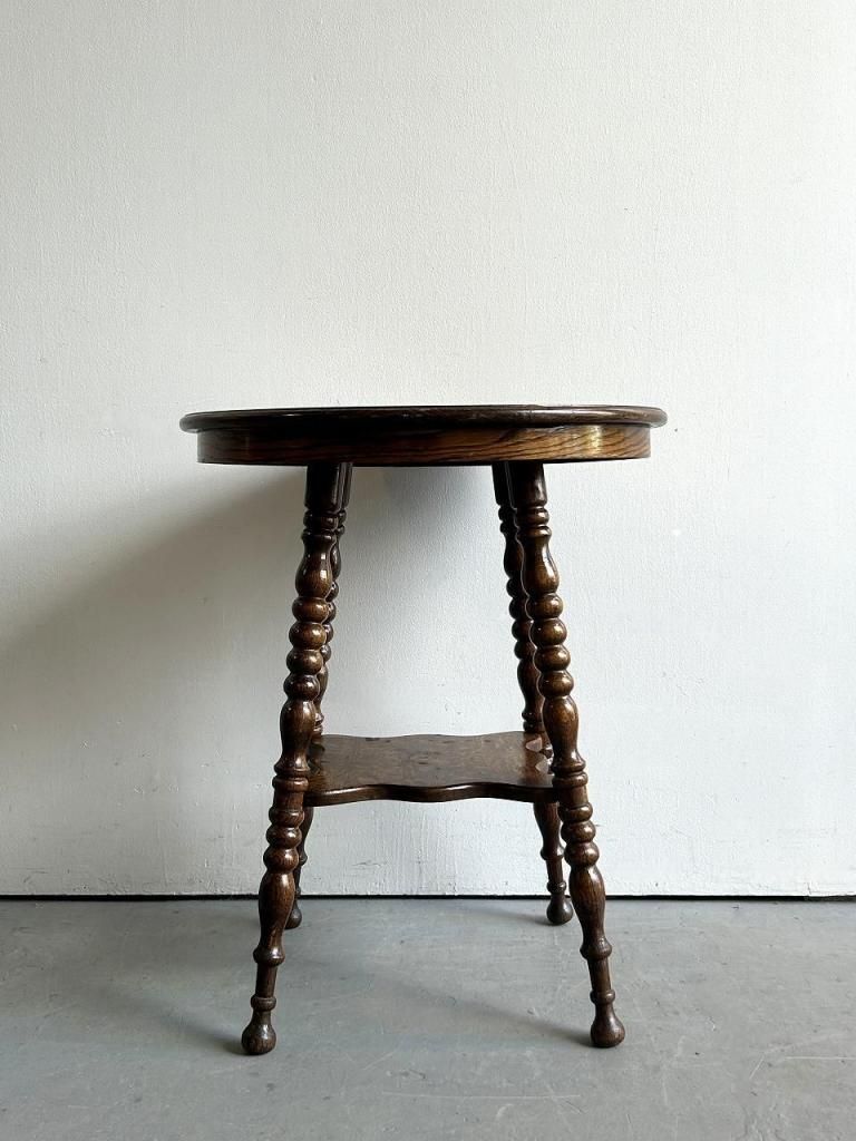 ソファ横のサイドテーブルとしてはもちろん、エントランスや一人掛けソファ横のパーソナルテーブルとしても扱いやすいバランス。深いブラウンの色味と経年のニュアンスが空間に落ち着きを与え、クラシック、カントリー、ミッドセンチュリー空間のアクセントとしても相性抜群です。