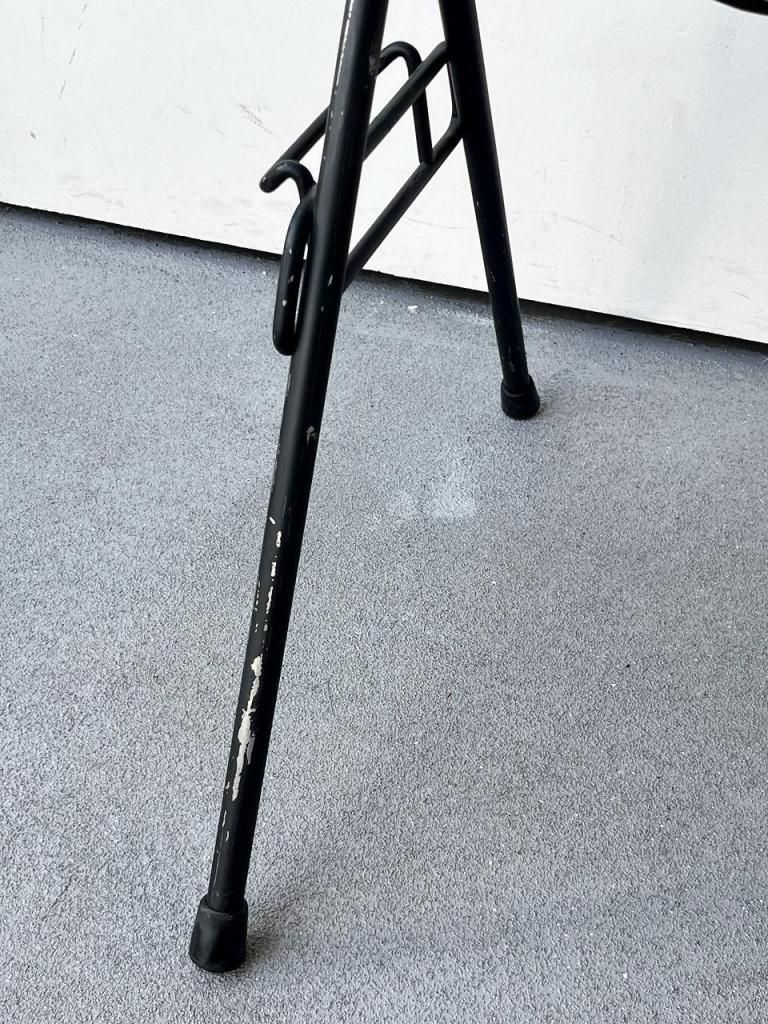 脚部はスタッキングベース(DSS : Dining Height Side Chair Stacking Base)。複数脚を重ねて収納できるほか、横連結が可能な構造で、学校や講堂、カフェテリアなど公共空間で広く採用された仕様です。