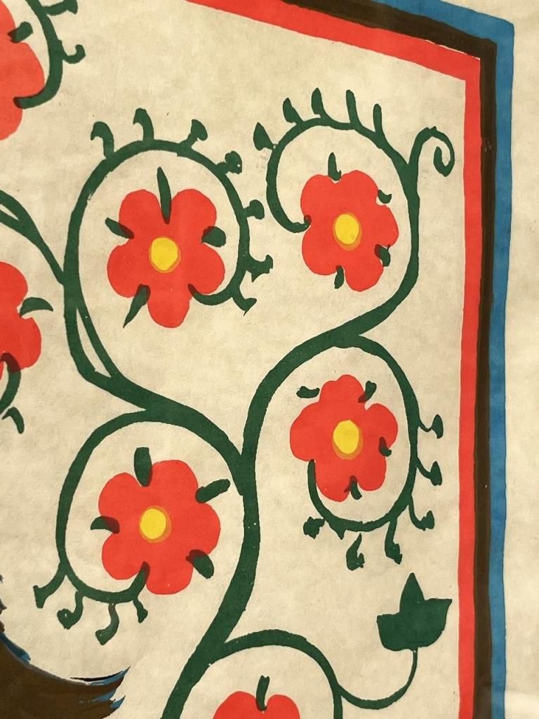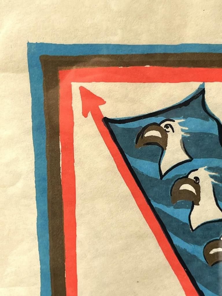 アメリカにて買い付けました、中世ヨーロッパの写本装飾(イルミネーション)を思わせる、鮮やかな色彩と線描が印象的なヴィンテージポスターです。
