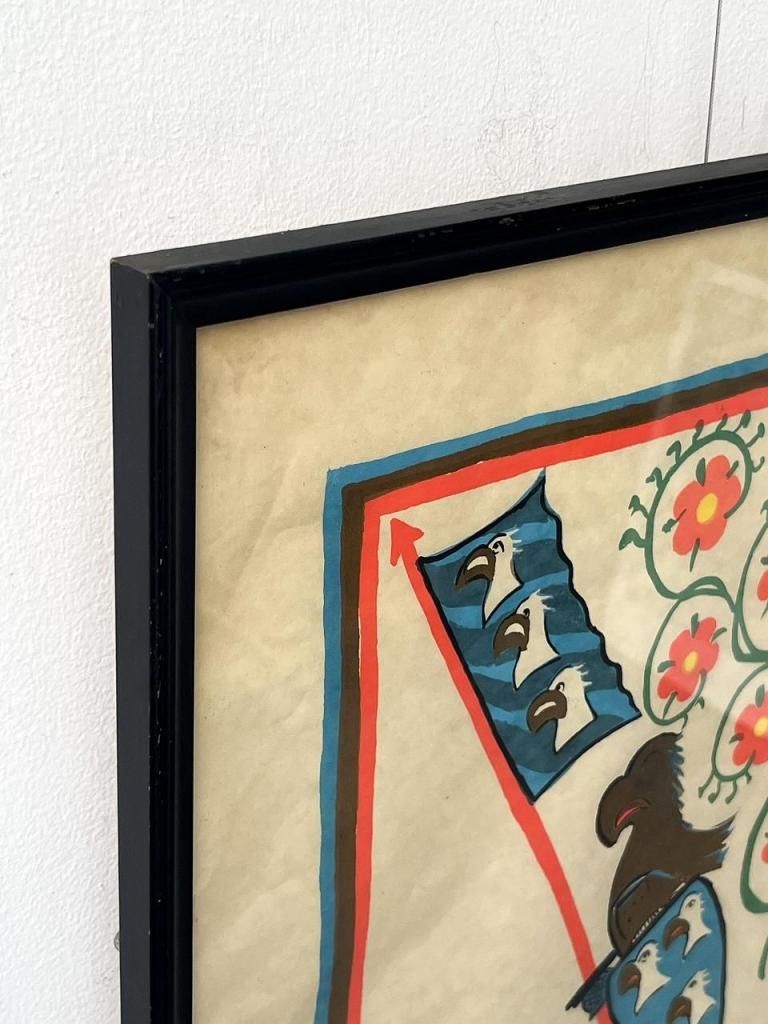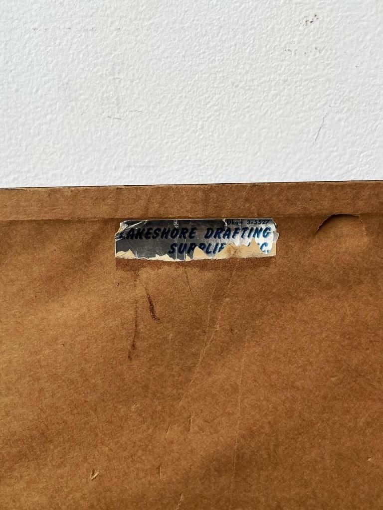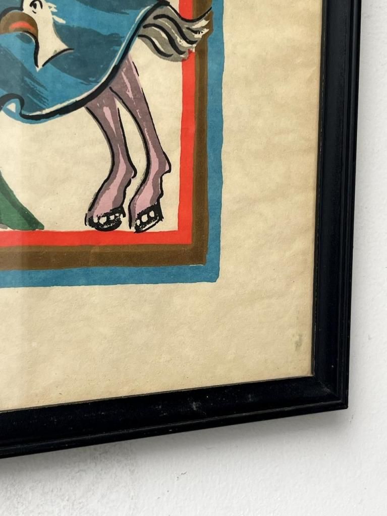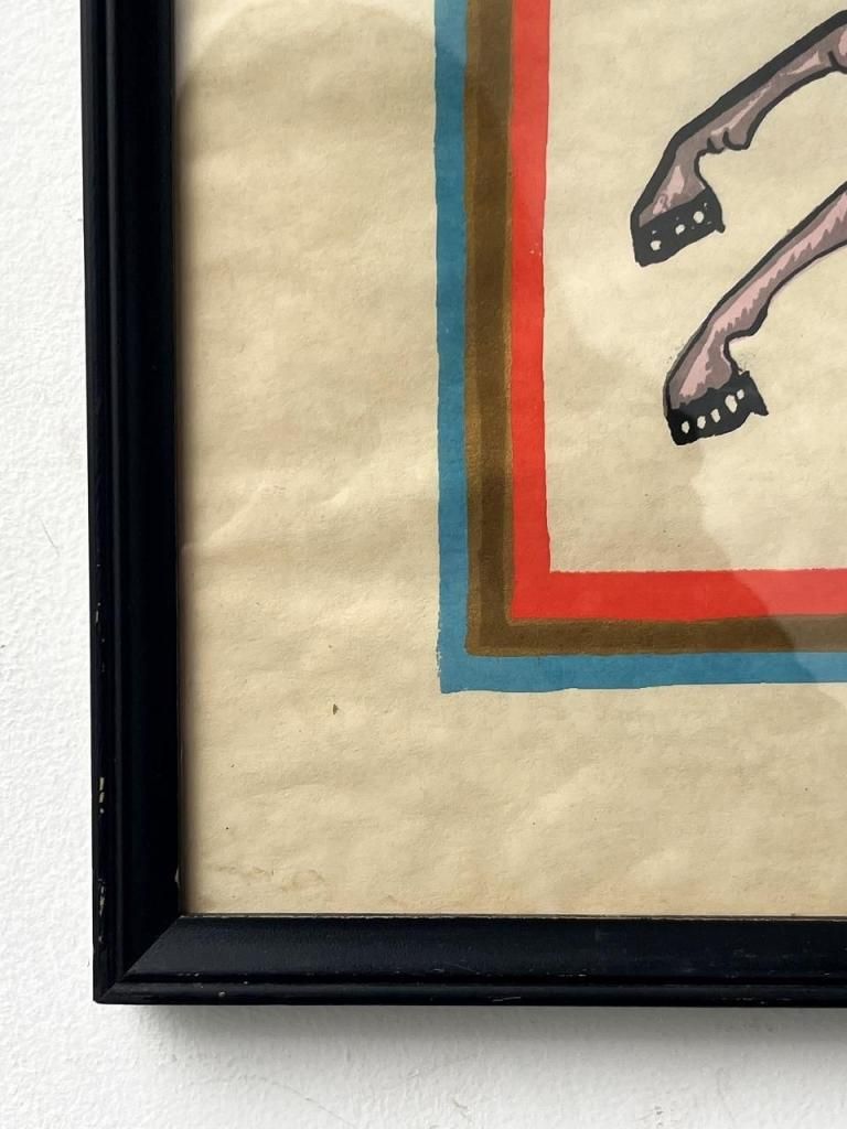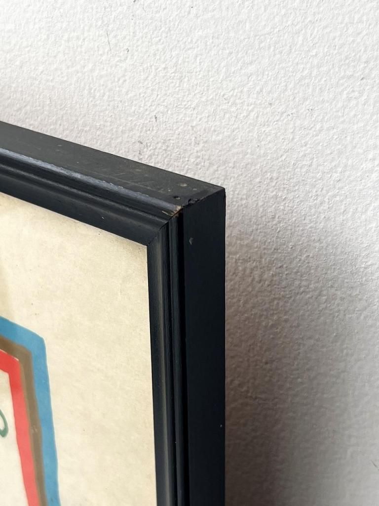 紙面には経年によるわずかな波打ちが見られ、1950–60年代らしい味わい深いパティナがしっかりと残った雰囲気のある一枚。シンプルなブラックフレームに収まり、アートとしてそのまま飾れる完成度の高い仕上がりです。
