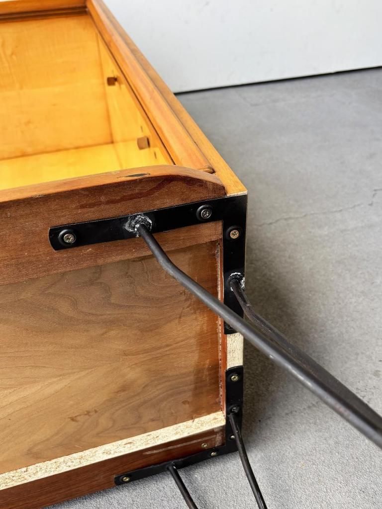 シンプルな作りの中に、ヘアピンレッグを採用されたミッドセンチュリーな要素が垣間見える1台。