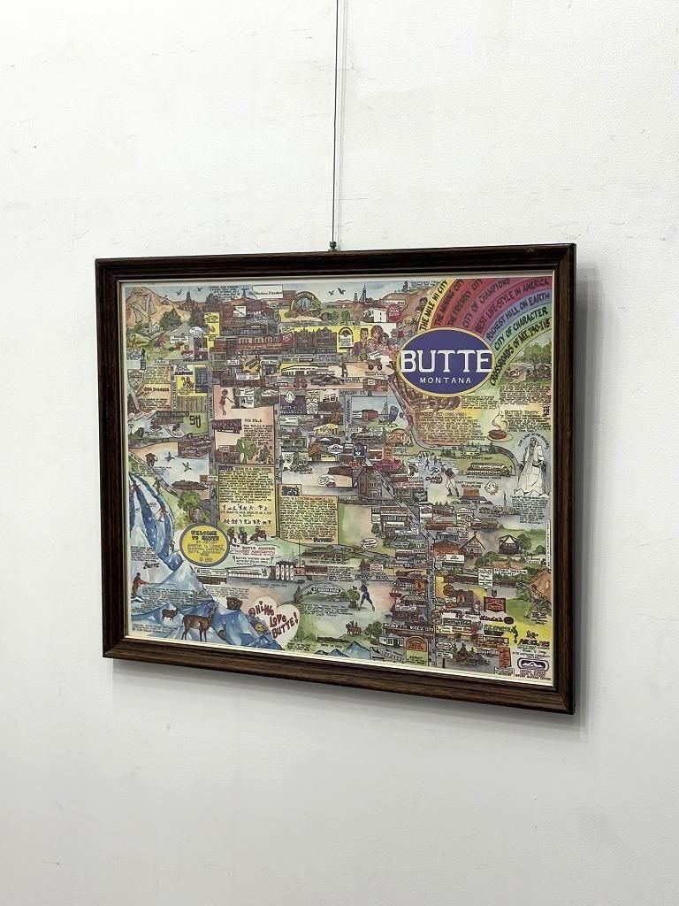 アメリカにて買い付けました、1986年製の ”WELCOME TO BUTTE” 額入りガラスポスターです。