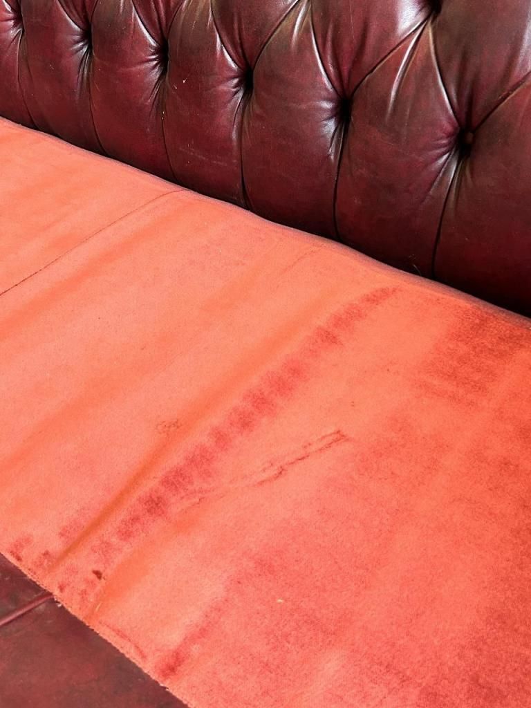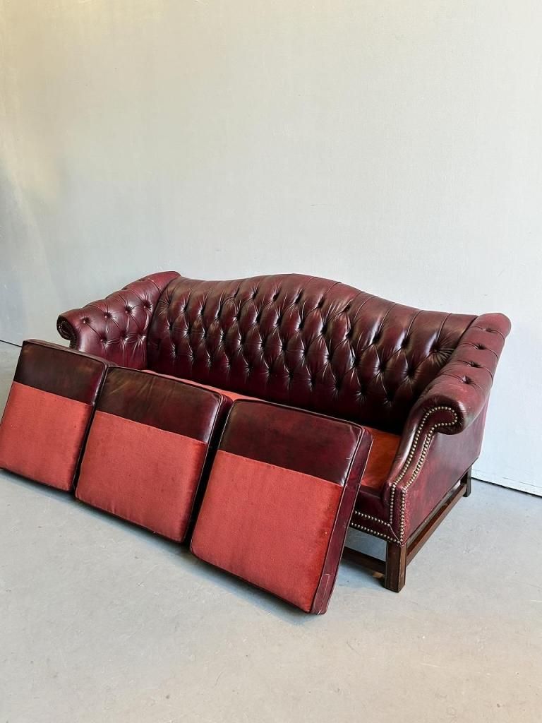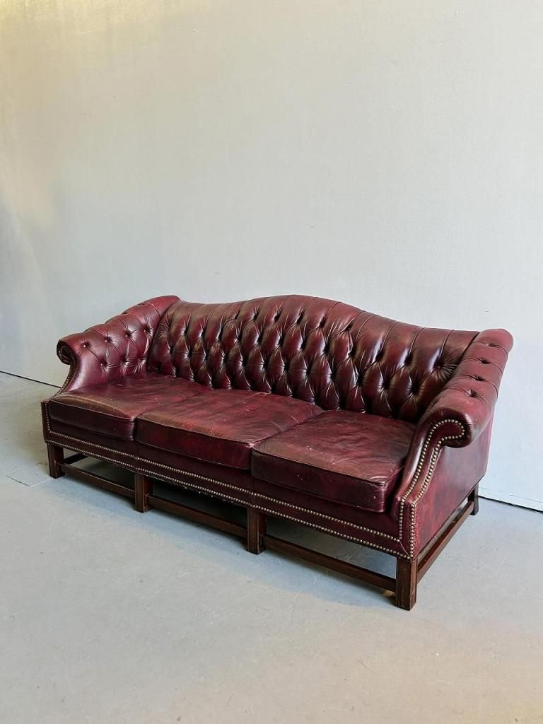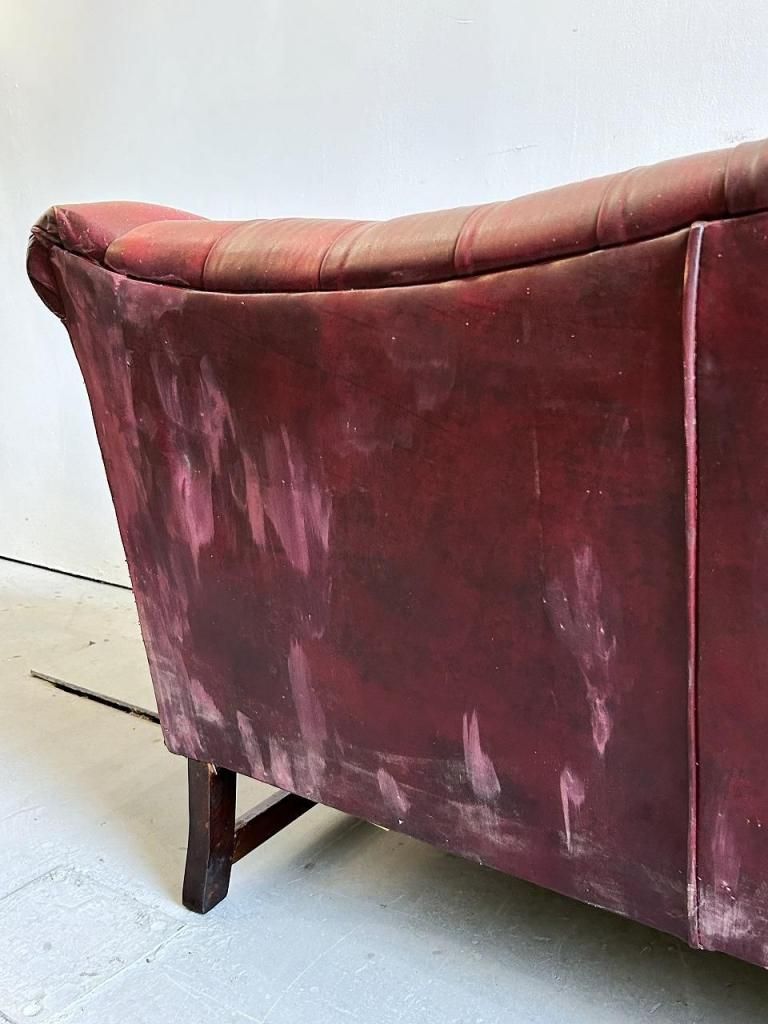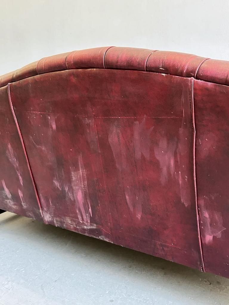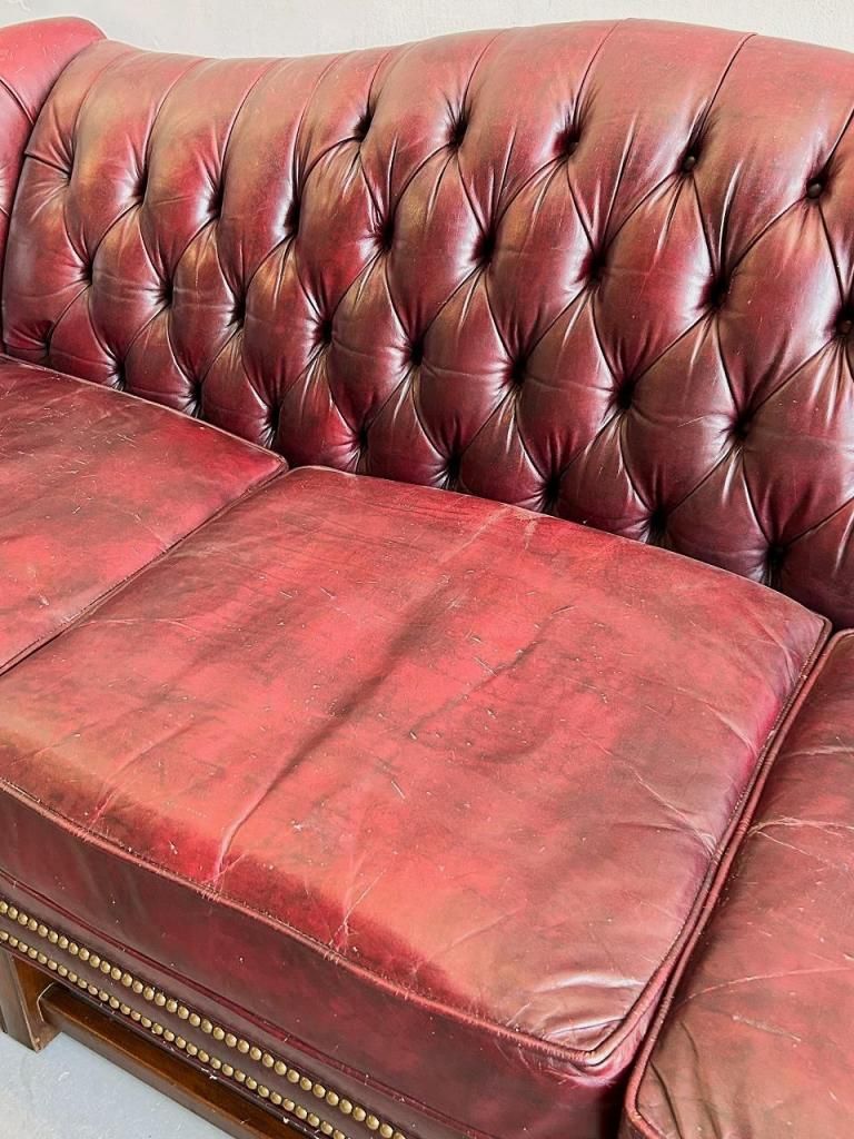 背からアームにかけて緩やかに波打つラインと、細かく深く沈んだボタンダウンの表情が、英国チェスターフィールドを思わせる重厚さを演出しています。