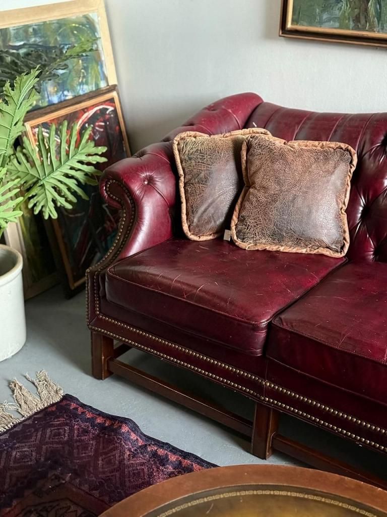 使い込まれたレザーには擦れや色ムラが浮かび上がり、ヴィンテージレザーならではの深い陰影を纏った美しいパティナへと育ち、新品のレザーソファには出せない魅力です。