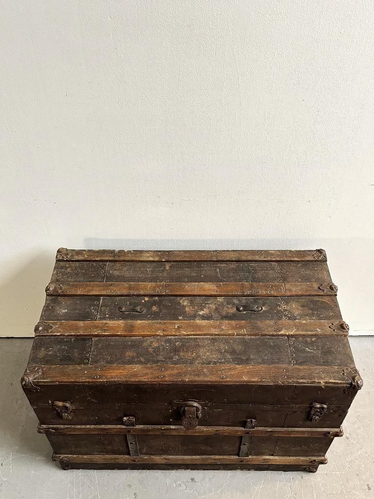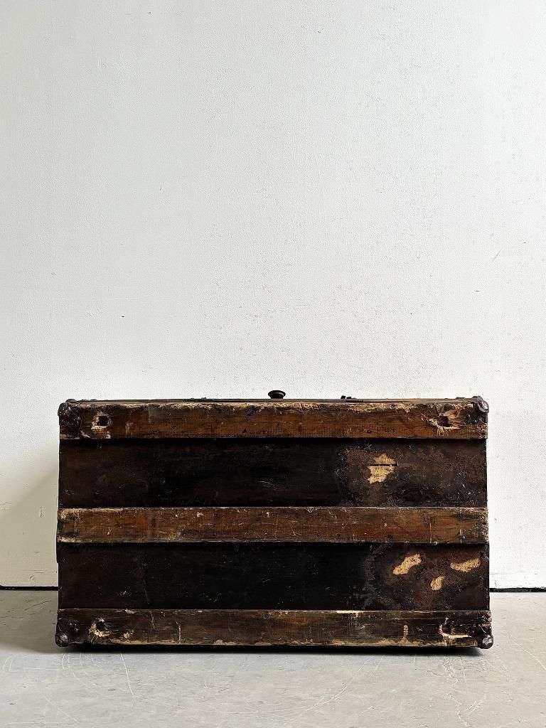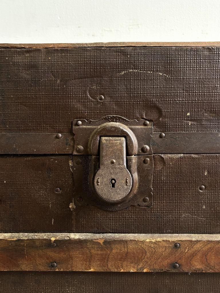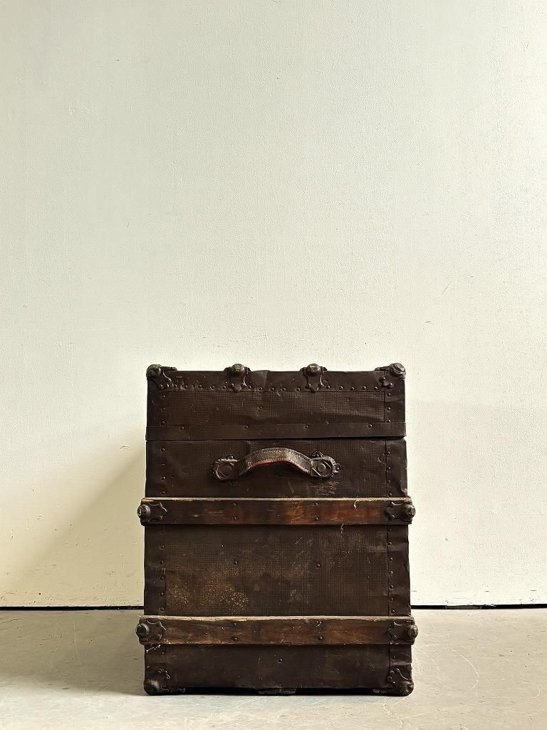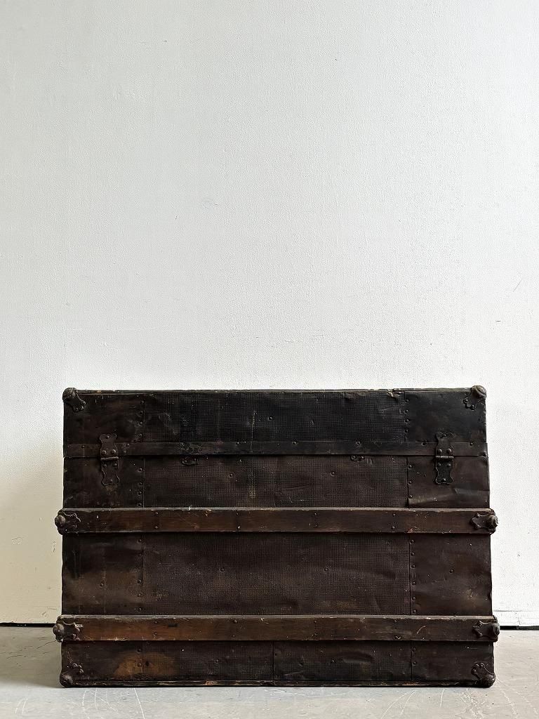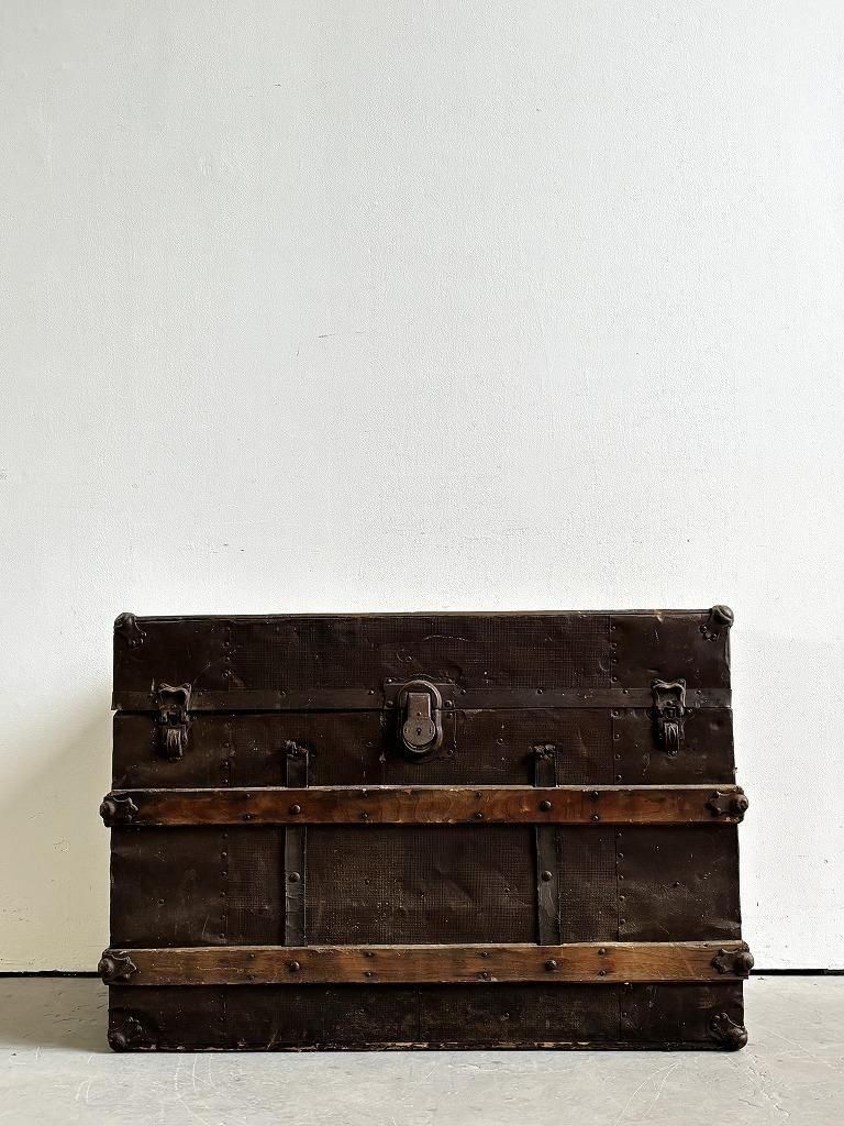 アメリカで1920-30年代に製造されたスチーマートランク(Steamer Trunk / Cabin Trunk)。当時の旅行用トランクの典型的な構造を持ち、ハードな旅や長期移動に耐える実用家具として作られたものです。