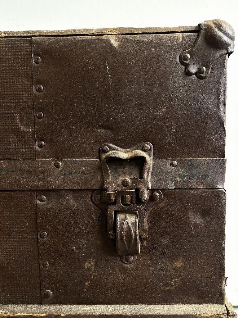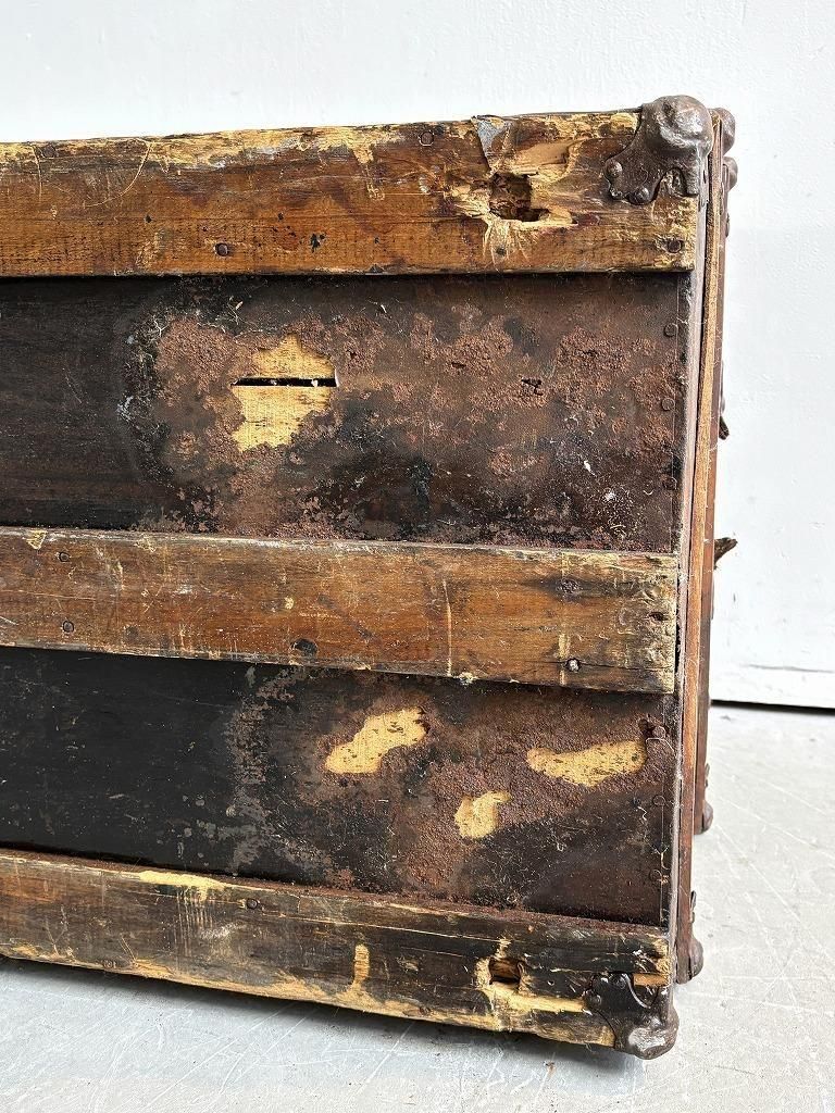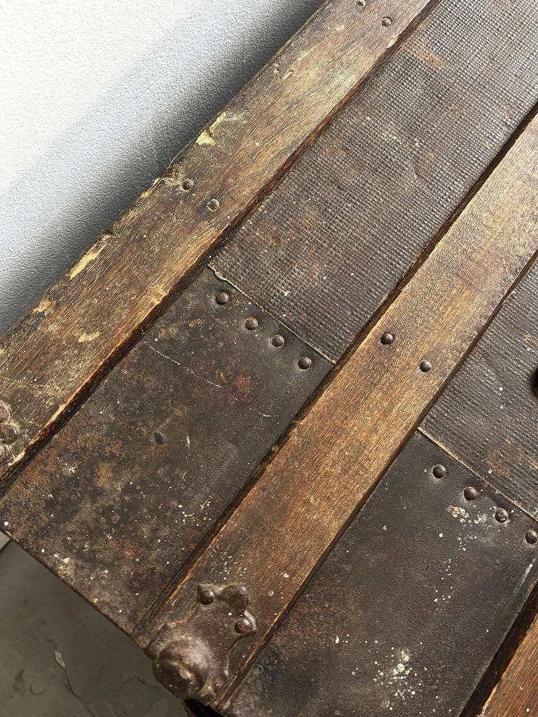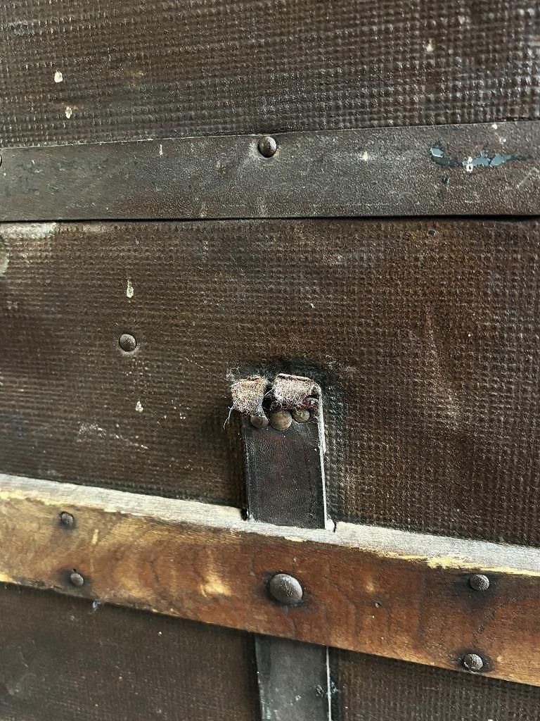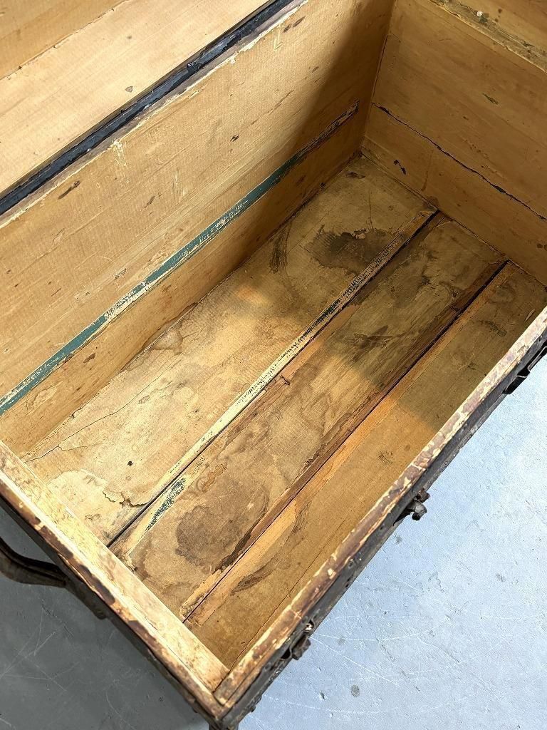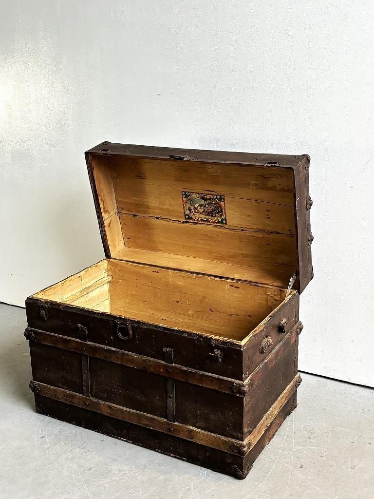 アメリカで1920-30年代に製造されたスチーマートランク(Steamer Trunk / Cabin Trunk)。当時の旅行用トランクの典型的な構造を持ち、ハードな旅や長期移動に耐える実用家具として作られたものです。