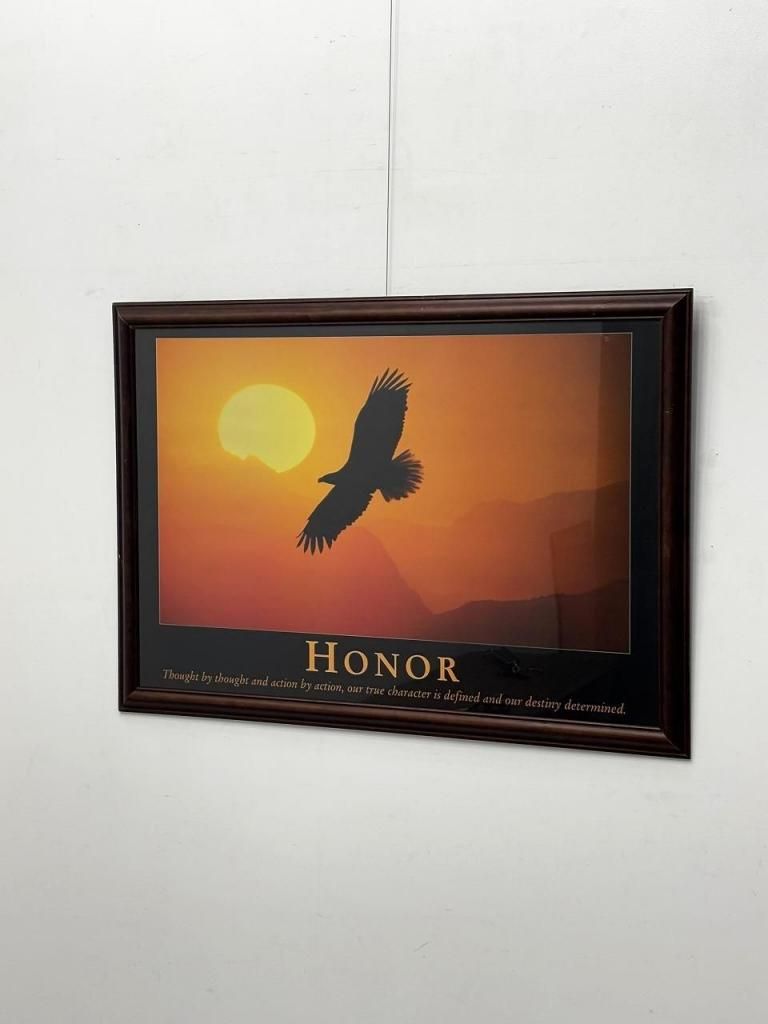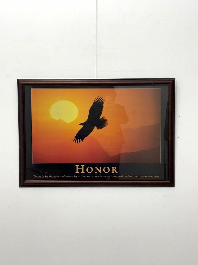 フレーム下部には “HONOR” の文字とメッセージが添えられた、アメリカらしいモチベーショナルポスターのスタイルとなっています。