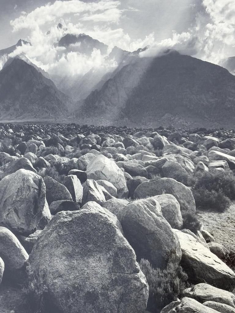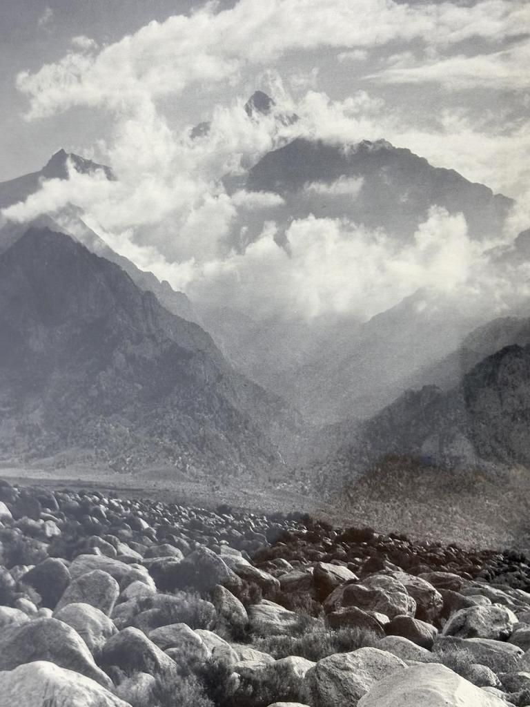 雄大な自然の光と影をドラマチックに捉えたモノクロ風景は、アンセル・アダムスならではの緻密な表現が光る一枚。