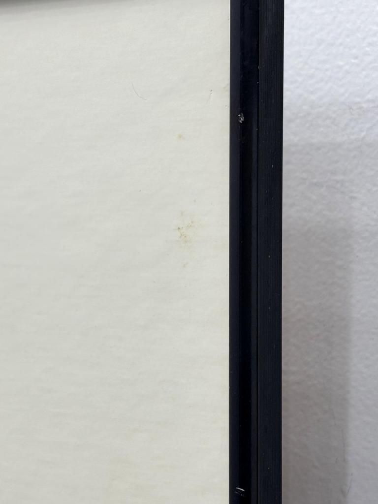 ポスターのモノトーンとブラックフレームが作品の存在感を一層引き立てています。