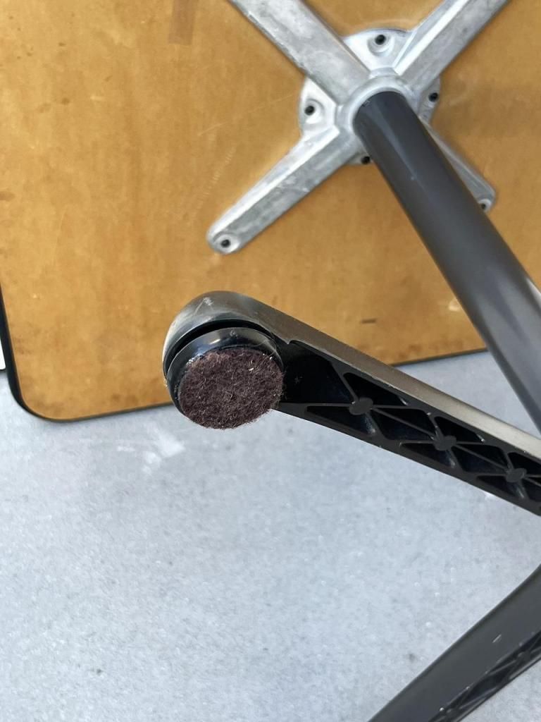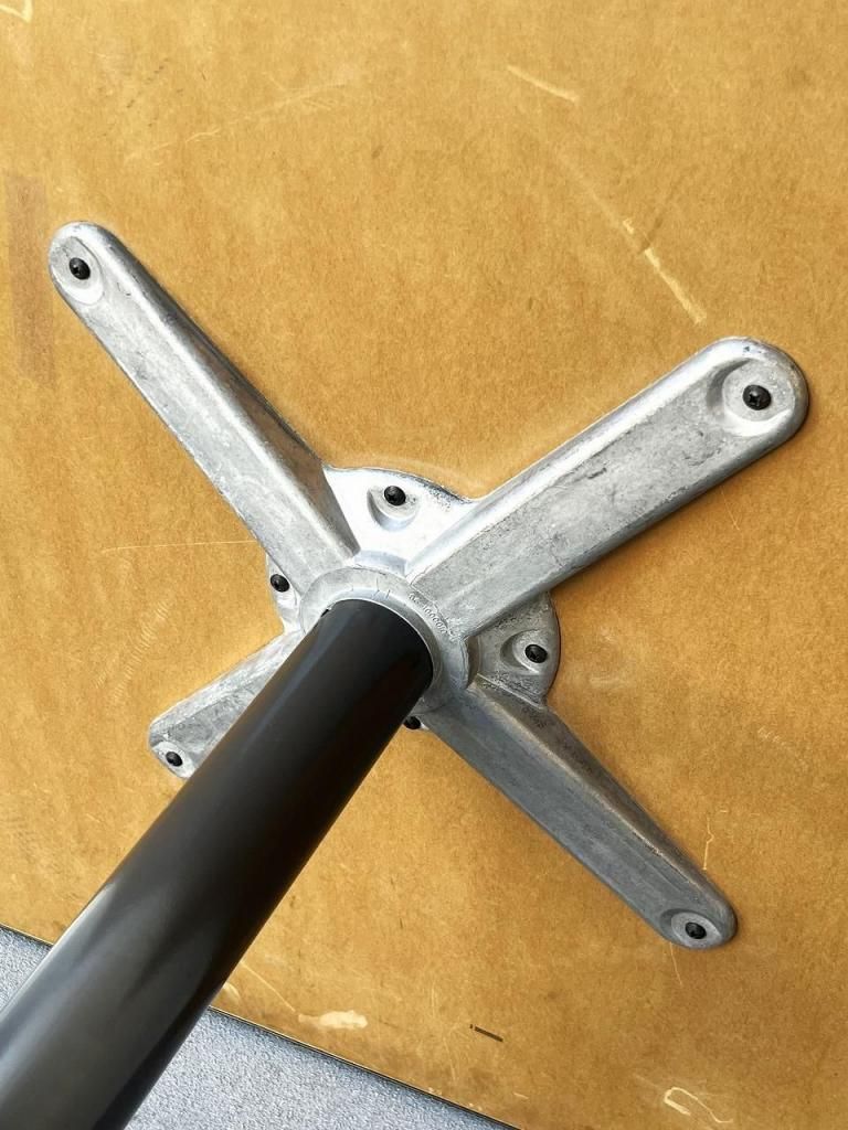 脚部はアルミキャスト製の4本脚スターベースで、軽量ながらも高い安定感があり、公共施設やカフェテリアでも採用されていた実用性の高い構造となっております。