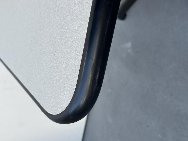 グレーのメラミントップにブラックのABSエッジ(耐衝撃性の高いプラスチック素材の縁材)を組み合わせた、シャープな印象の一台。