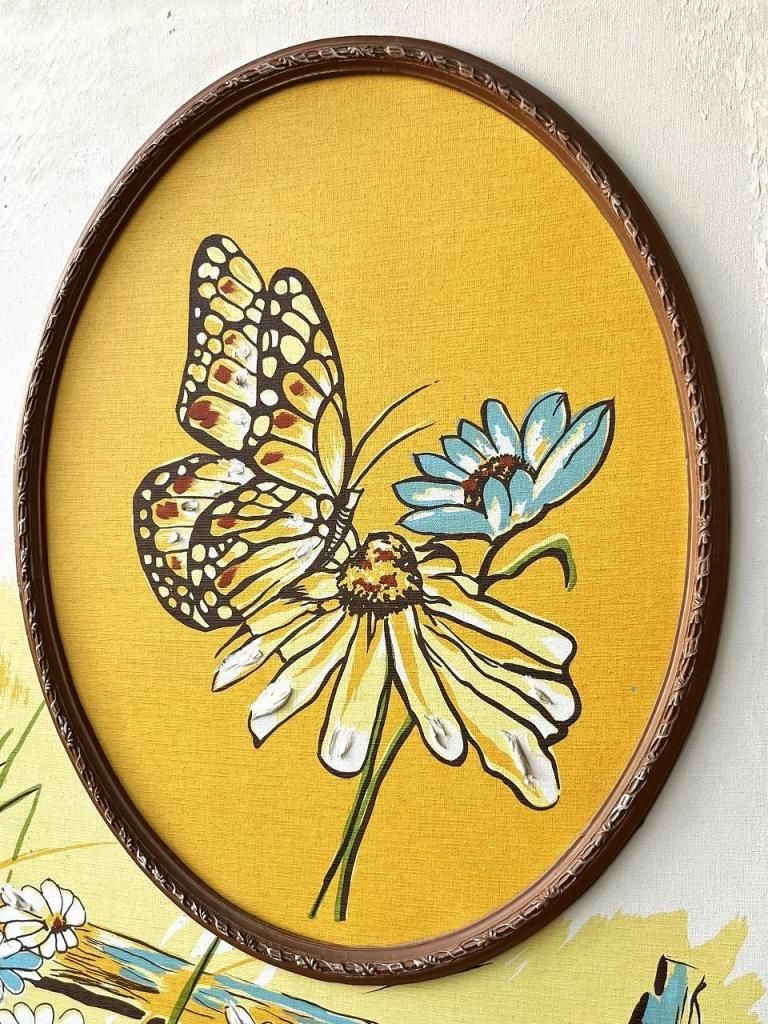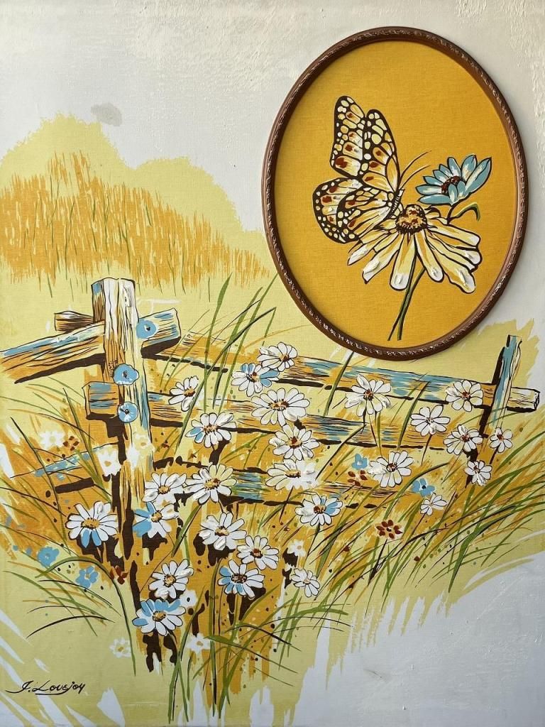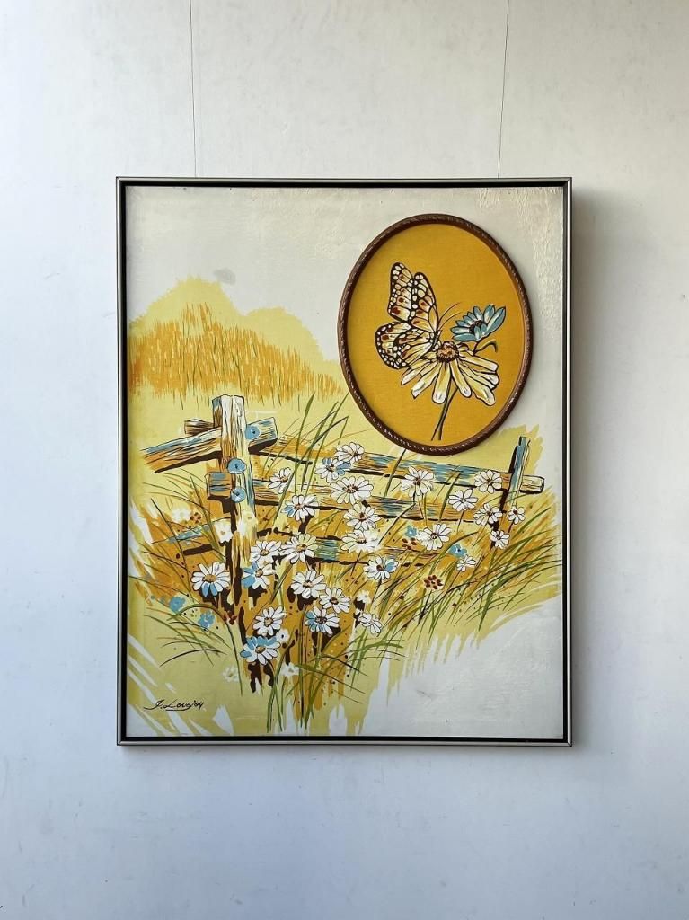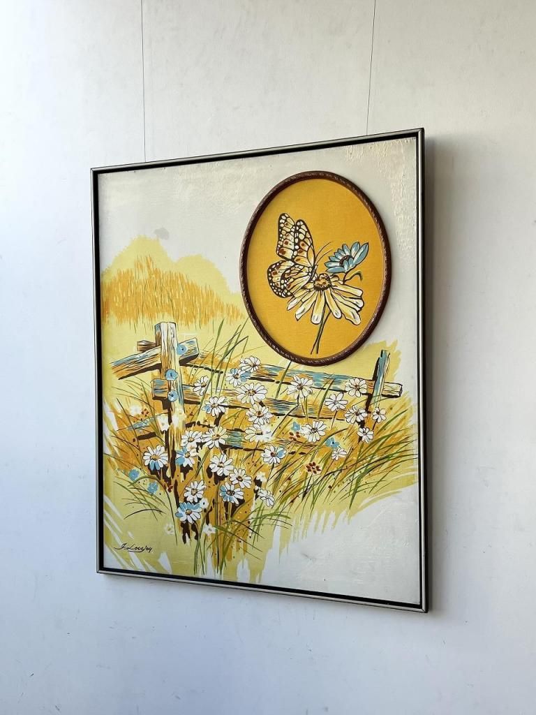 1970's J. Lovejoy "Daisy & Butterfly" ヴィンテージ ペイントアート ウォールデコ