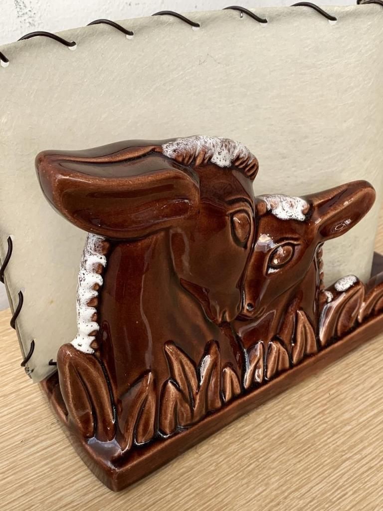 1950年代のアメリカらしい牧歌的で優しい造形が美しく表現されており、特に頭を寄せ合う鹿のモチーフは家族や安らぎの象徴として当時とても人気がありました。