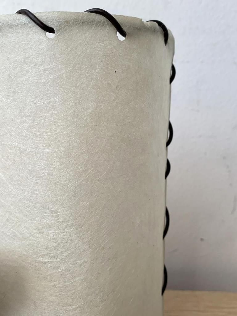 セラミックは飴色のような深いブラウン釉薬で、光を受けると艶やかに反射します。雪を思わせるホワイトのアクセントが立体感を強調し、ざらりとした質感のファイバーシェードは光を柔らかく拡散し、温かみのある灯りが広がります。