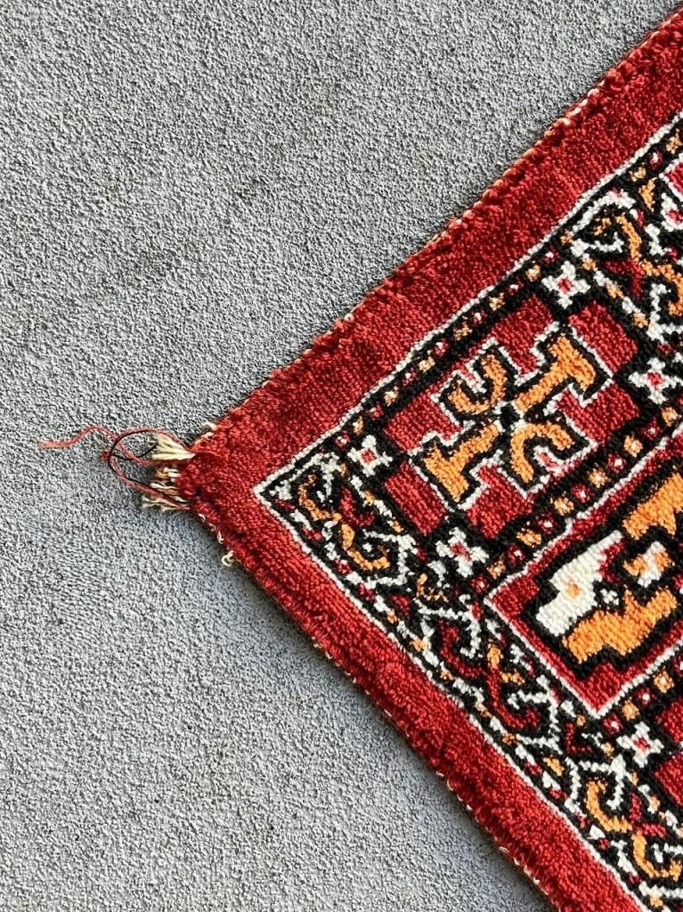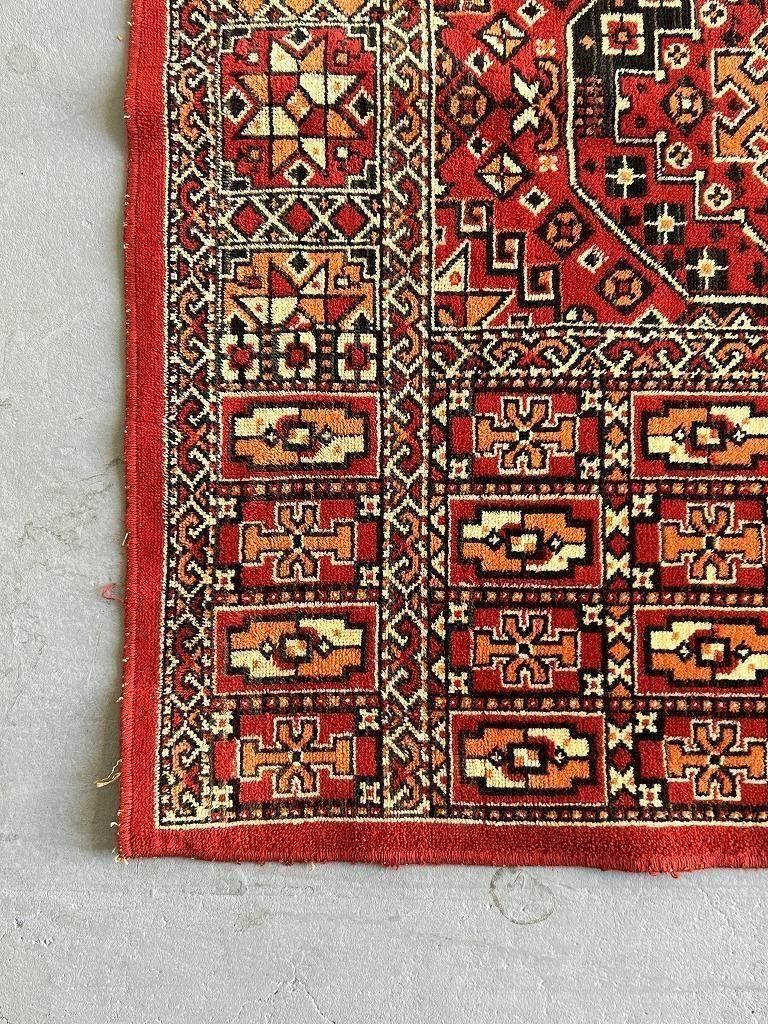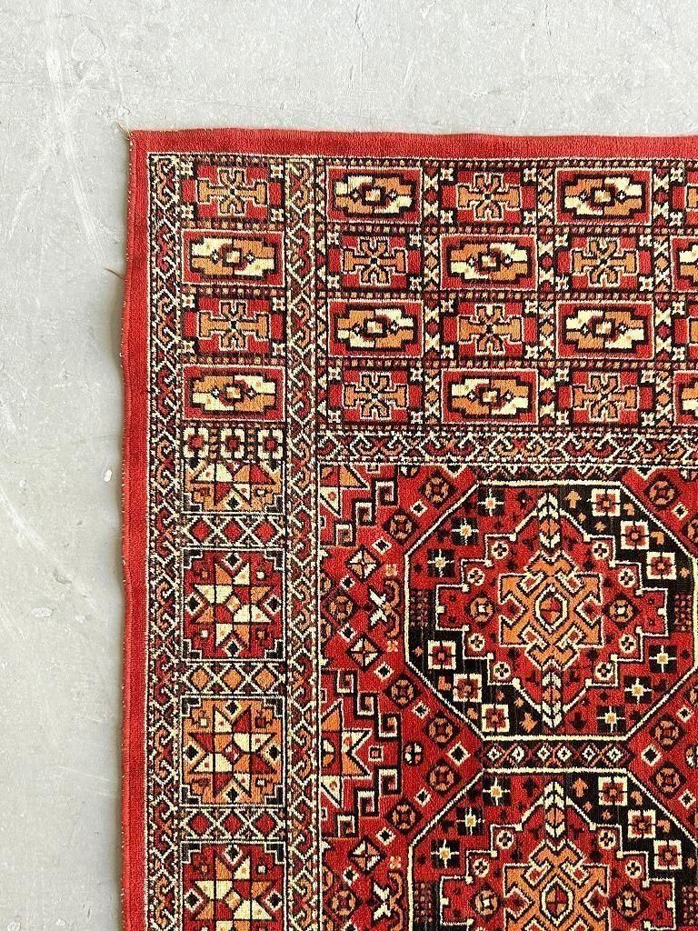 中央に連続するギュルと呼ばれる八角形や菱形の文様が並び、その中に幾何学模様が織り込まれている一枚。