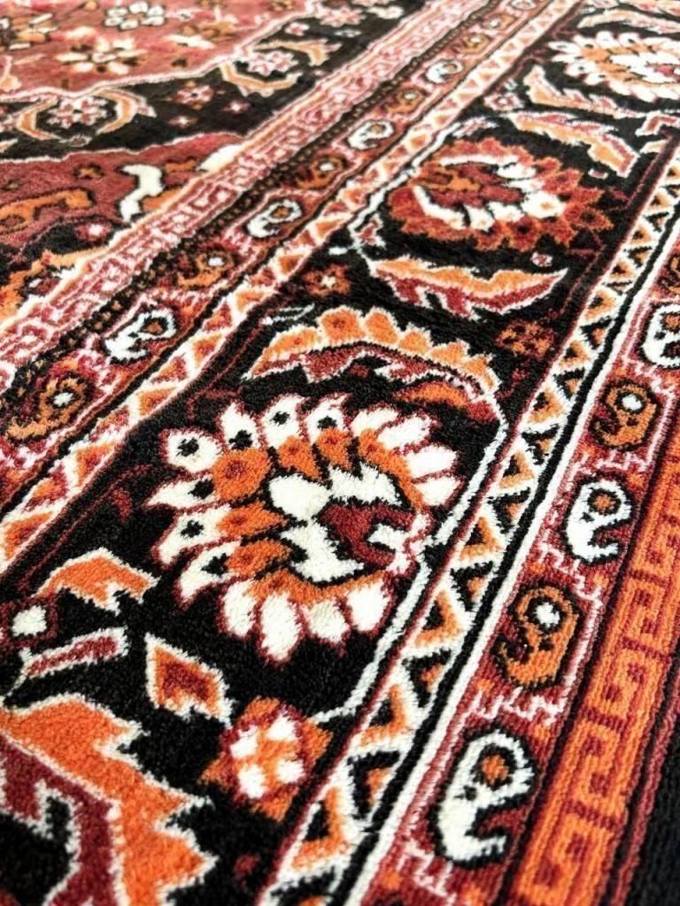 レッドやオレンジをベースにしたカラーリングと縁のブラックとオレンジが空間を締めてくれるようなゴージャスな印象与えてくれます。