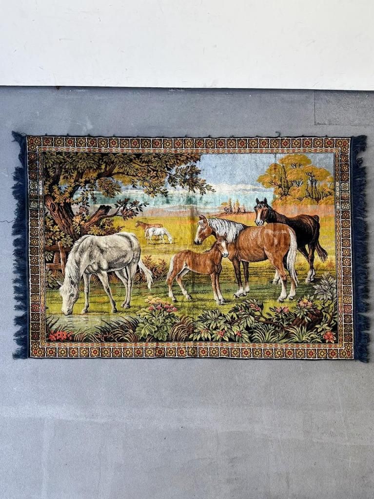 アメリカにて買い付けました、ヴィンテージ ホースモチーフ ラグです。