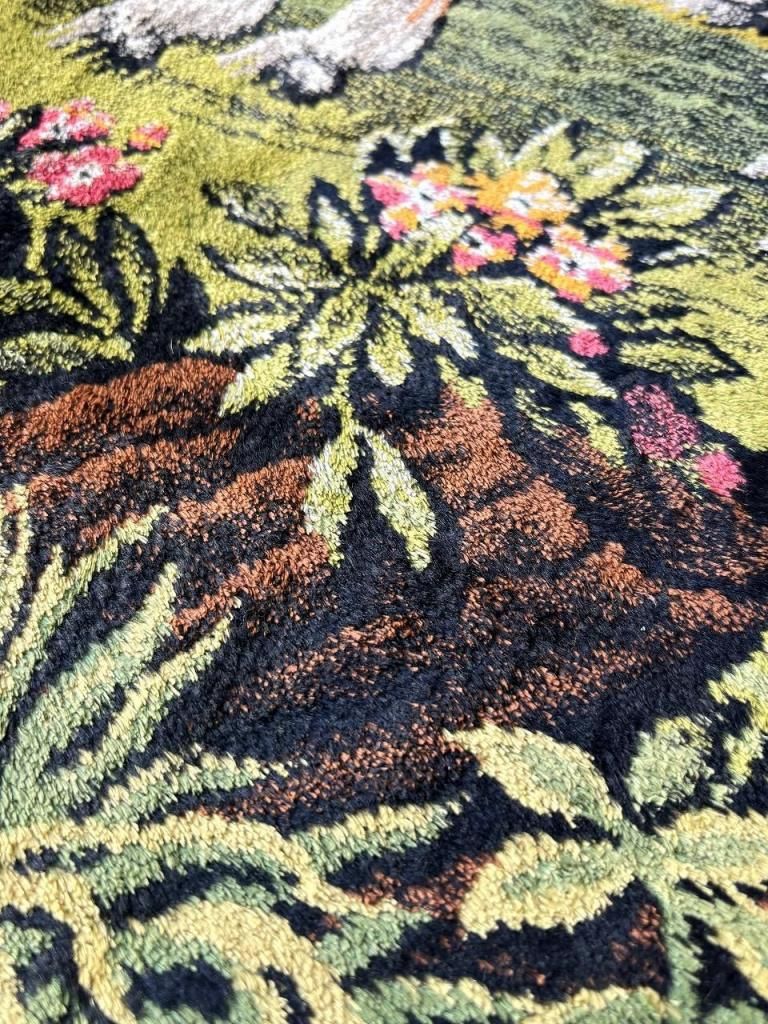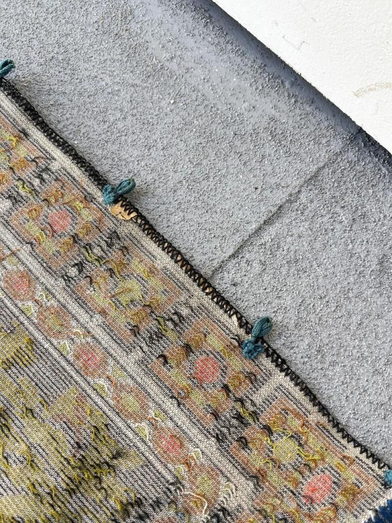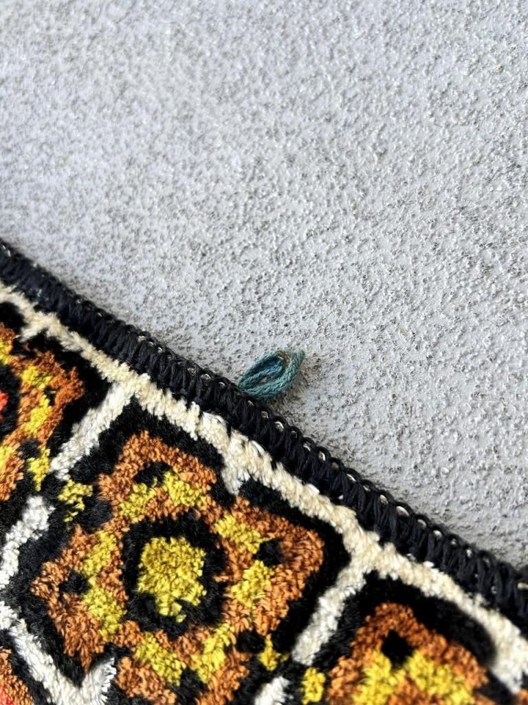 周囲を縁取る装飾的なパターンが額縁のような役割を果たし、ラグとしてはもちろん、ウォールデコとしてもかなりの存在感があります。