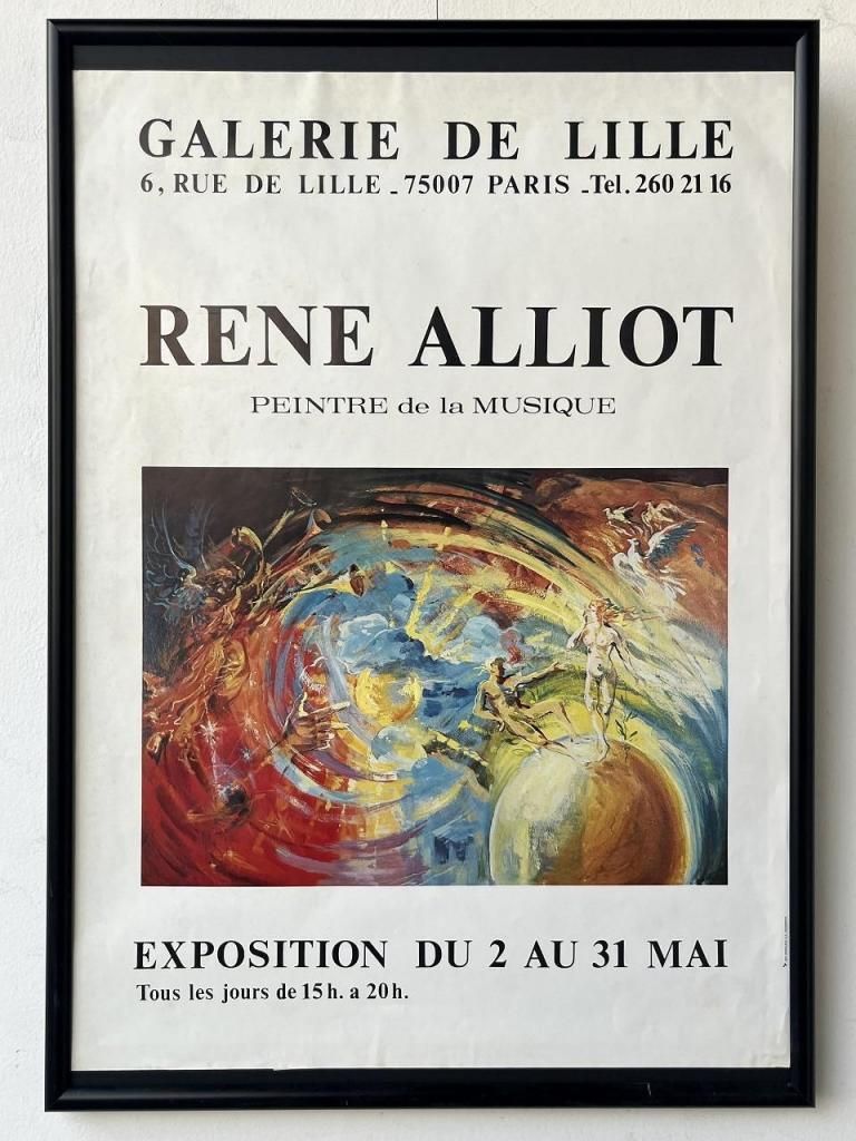 RENE ALLIOT(ルネ・アリオ)は「音楽を描く画家」という肩書きで、リズミックなタッチ・色彩の作品を発表していたフランスの画家で、この表現は当時のギャラリーポスターでよく使われていました。