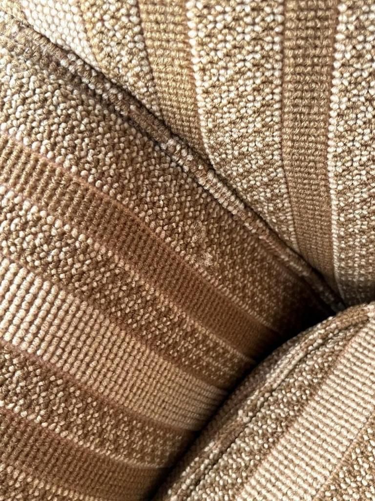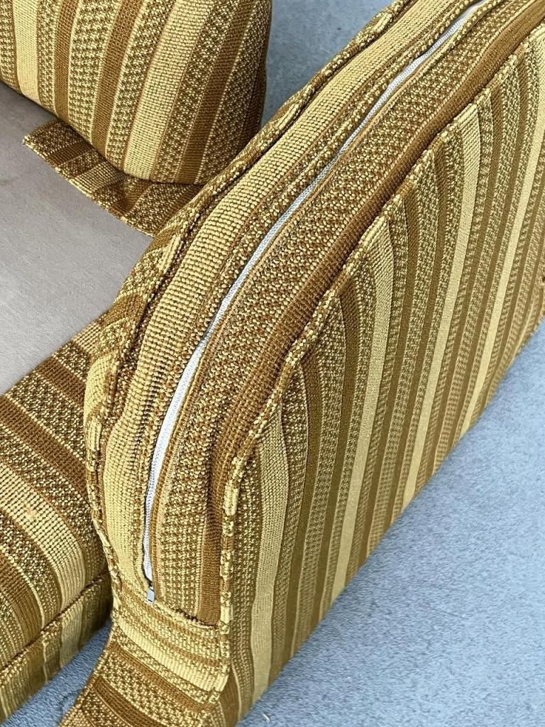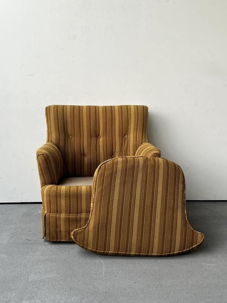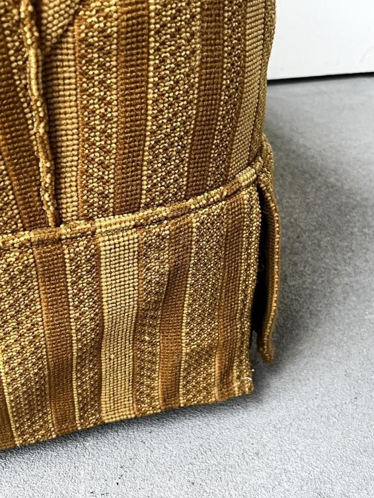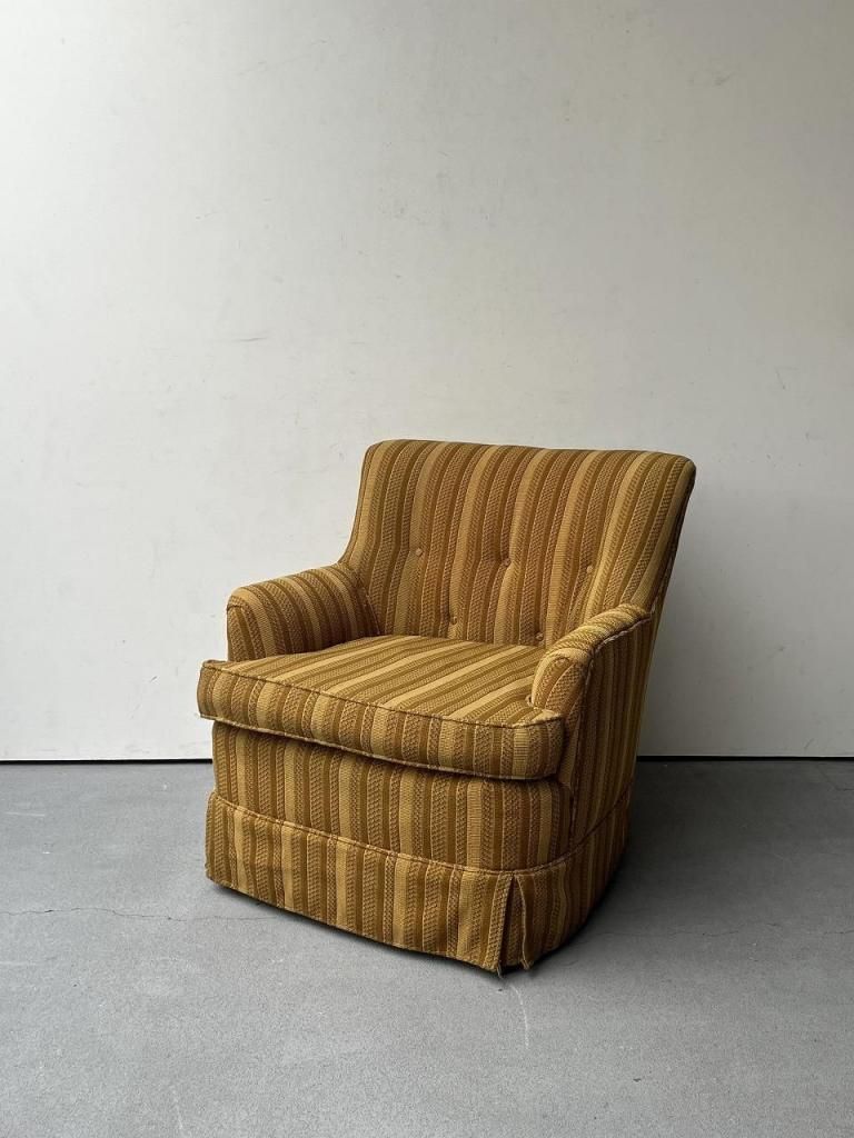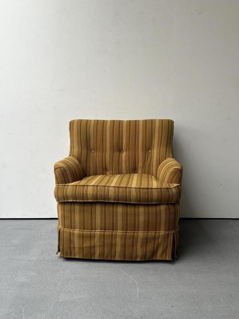 蜂蜜のようなハニーゴールドの色味が柔らかく、ストライプパターンと厚手で立体感のある織り生地が上品な印象を与える一脚。