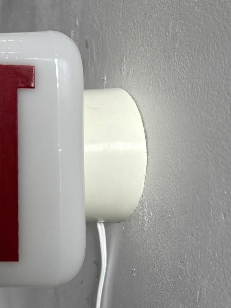 当時は、劇場・シアターやホテル、レストランといった、人が集まる場所で使用されていました。ブラケット仕様は出入口の横、廊下の曲がり角、非常時に最も目に入る高さに設置されることを前提としている為、正面からの視認性、横から見たときの立体感、点灯時の光の広がりなどすべてがよく計算されています。