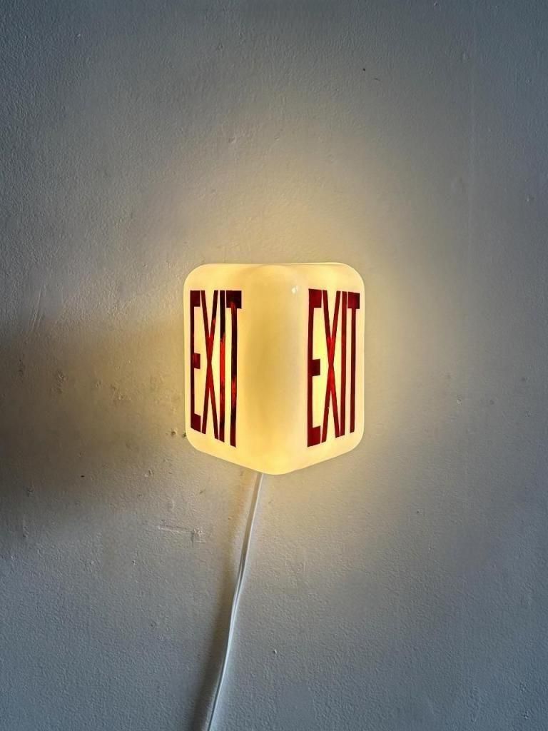 1920-30’s ヴィンテージ EXIT ホワイトガラス ブラケットランプ