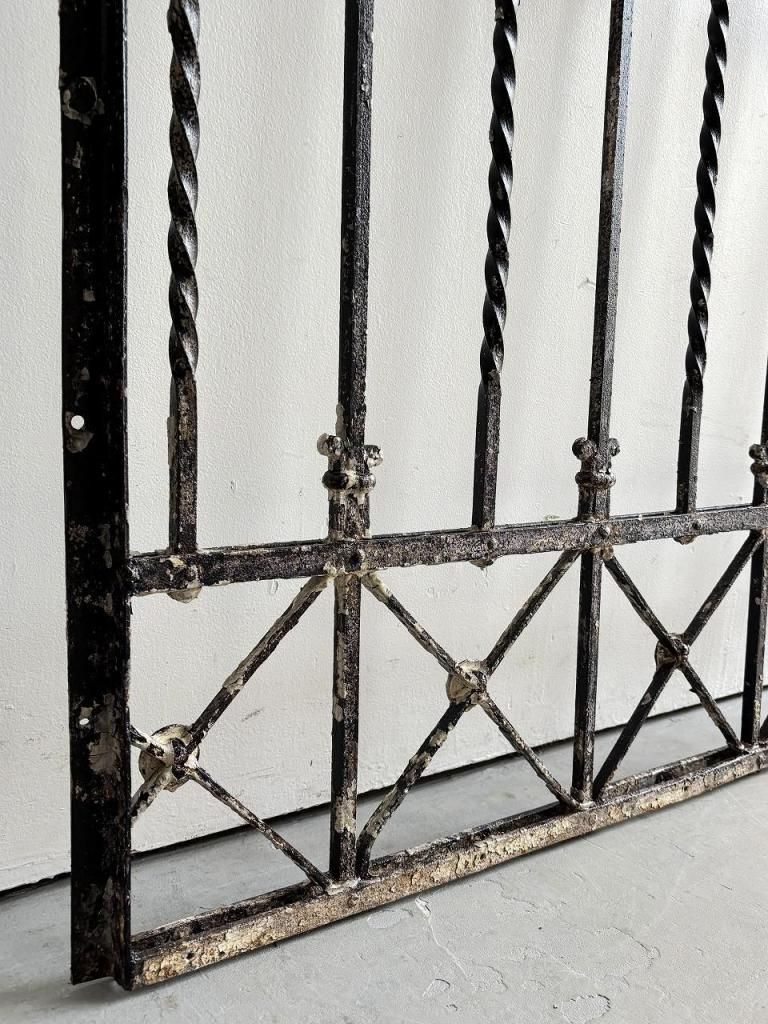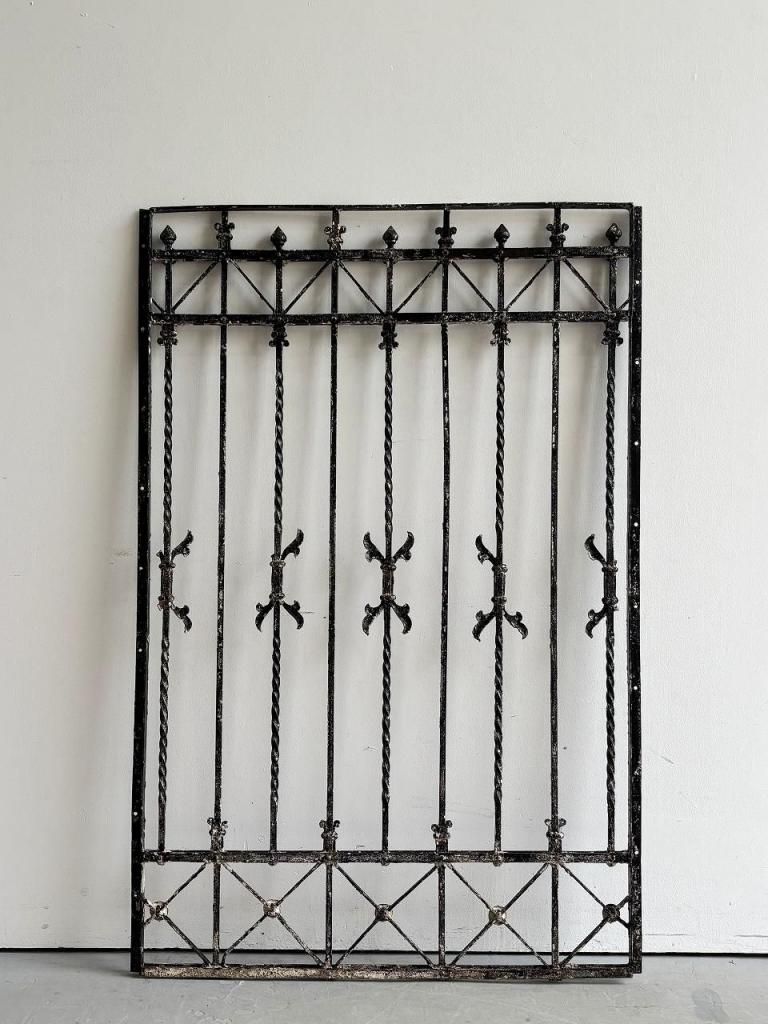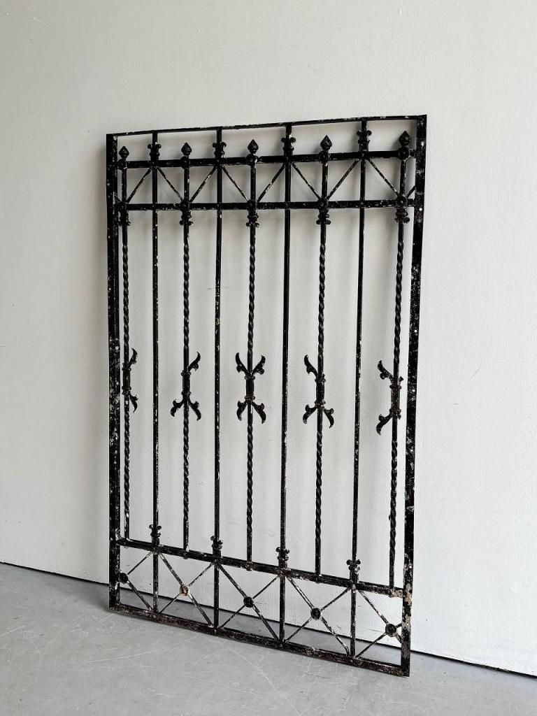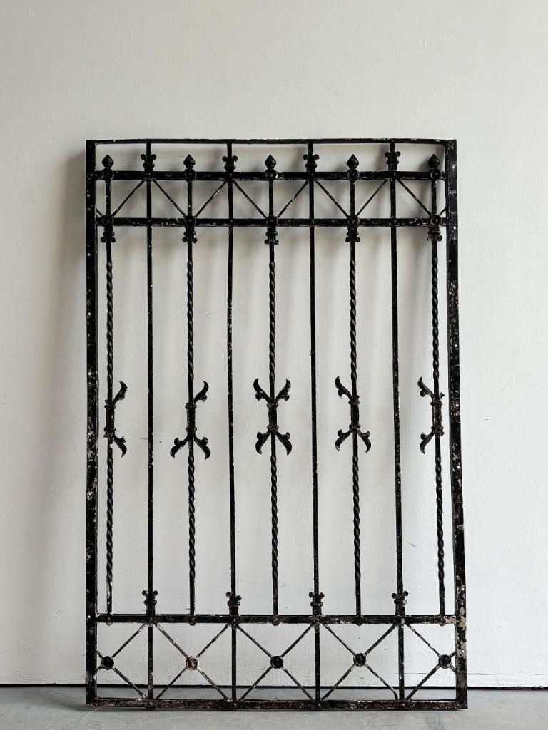 縦方向に配されたツイストアイアン、要所に施されたフルール・ド・リス(百合)を思わせるモチーフ、上下に走るX字の補強フレームなど、装飾と構造が同時に成立している点が大きな魅力です。