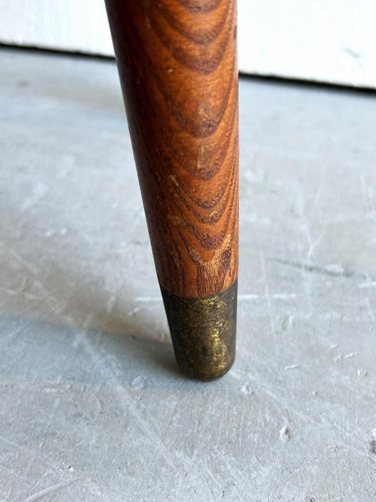 脚部はテーパードレッグ仕様で、先端に施された真鍮のキャップが、ラフな天板との美しいコントラストを生み出しています。