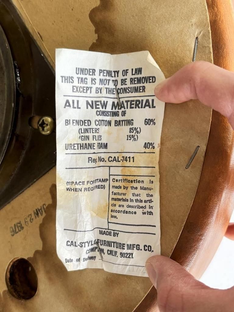 ラベルから読み取れるように、座面のクッション素材はコットンバッティングとウレタンフォームによる二層構造。それにより、柔らかすぎず・沈みすぎない、長時間使用を前提とした座り心地が生まれています。
