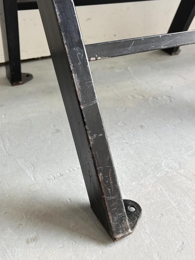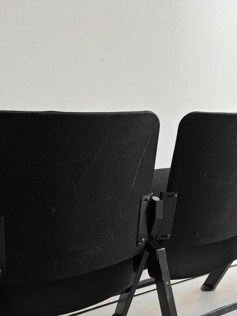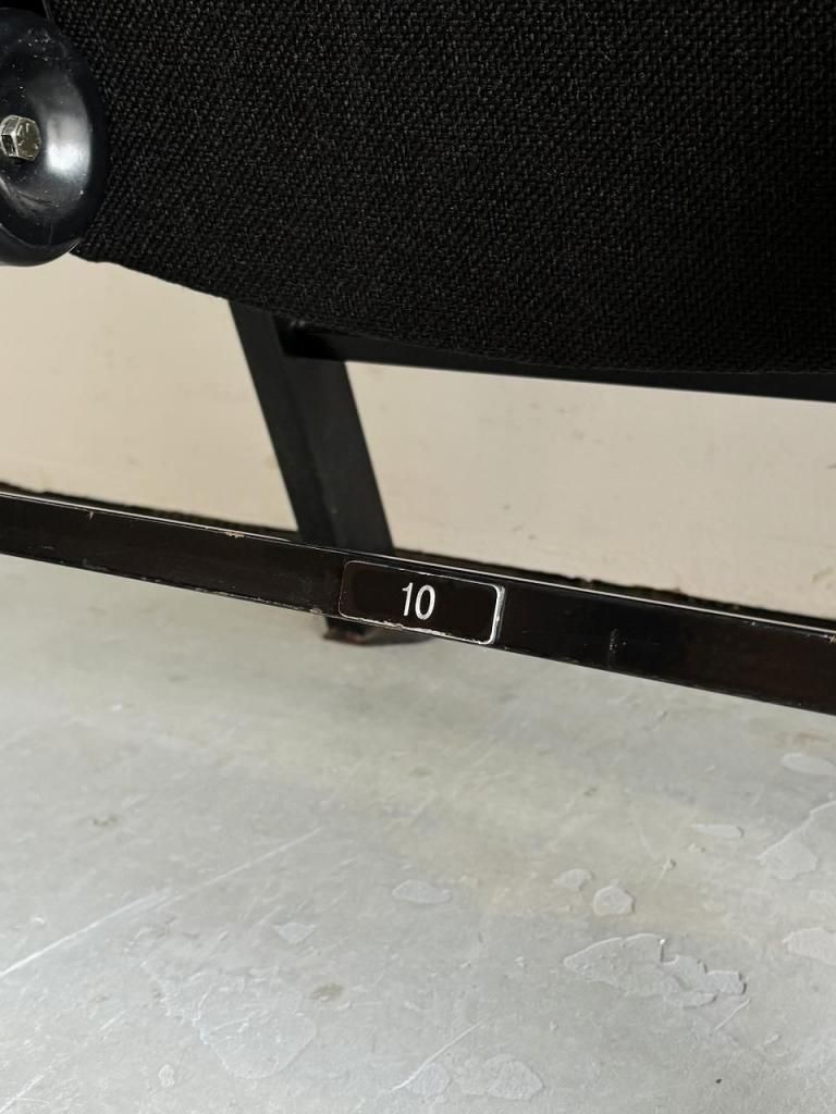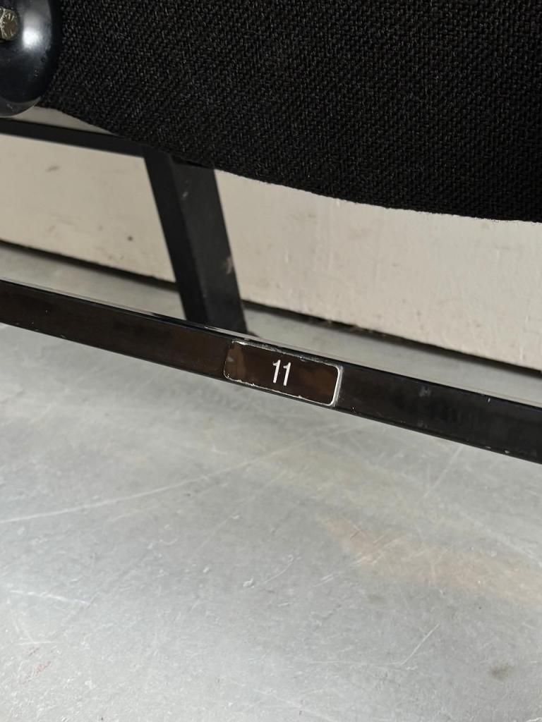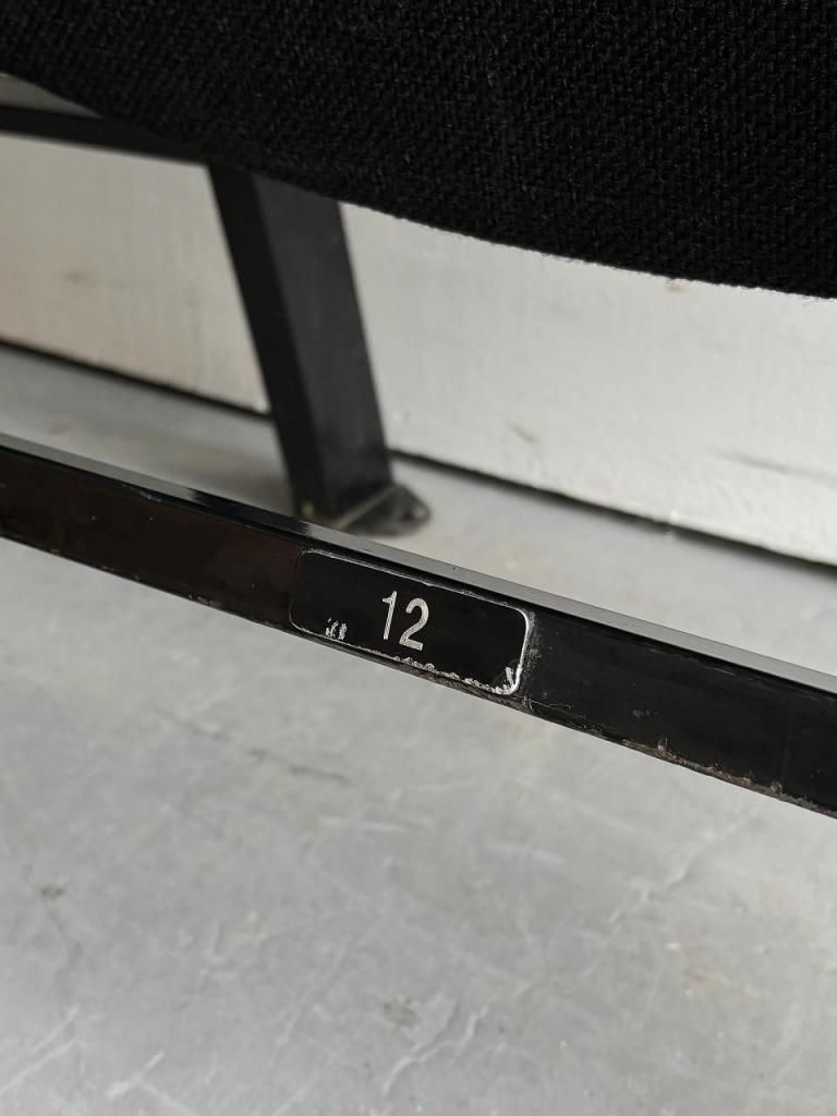 無機質な印象ですが、使い込まれたファブリックの表情や、塗装の擦れ、座席番号プレート(10 / 11 / 12)といったディテールが加わることで、ヴィンテージならでは佇まいを生み出しています。