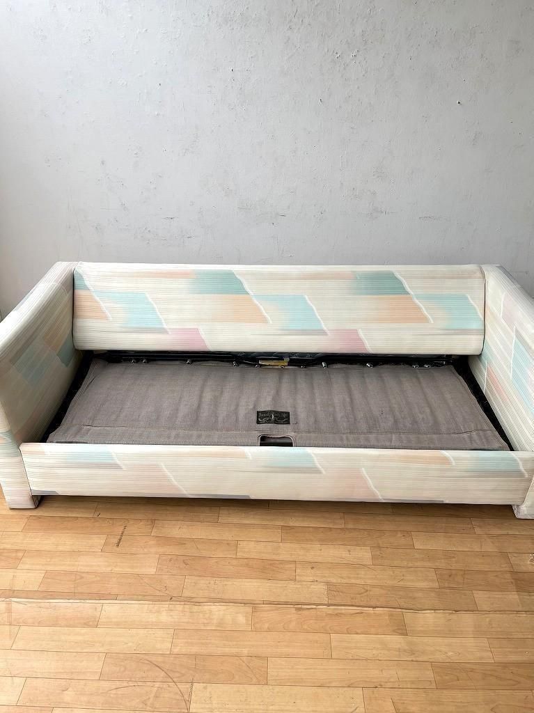 白壁・無垢床・コンクリート床など、シンプルな空間に合わせることで、80年代特有の色とボリュームが美しく映え、ゲストルーム用ソファベッドとして普段はソファ、必要なときはベッドという、本来の機能を最も素直に活かせる使い方もお勧めです。