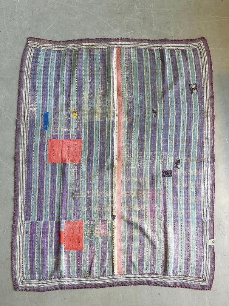 インド北部や東インド ベンガル地方(インド/パキスタン/バングラディッシュ)地方で、1針1針手作業で縫われた伝統手芸工芸 ”Khanta Quilt”です。