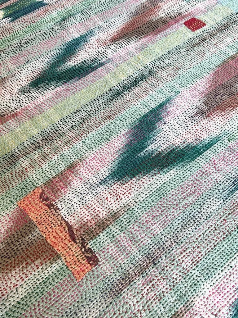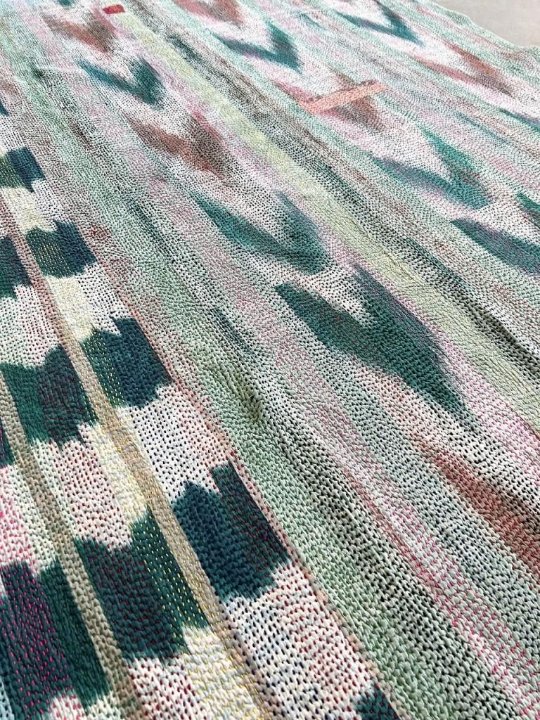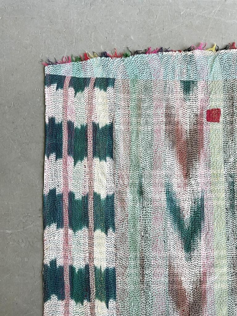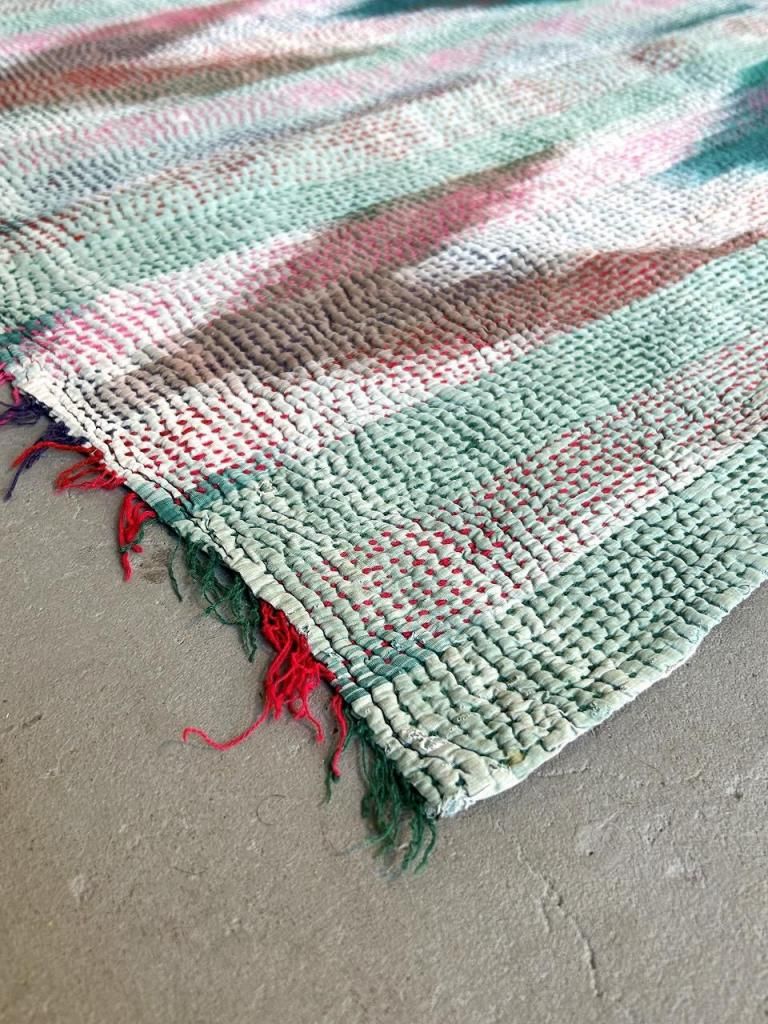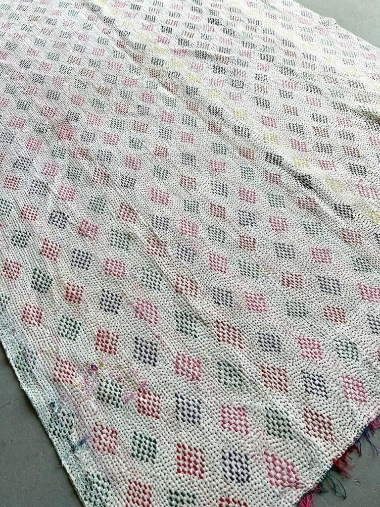 インド北部や東インド ベンガル地方(インド/パキスタン/バングラディッシュ)地方で、1針1針手作業で縫われた伝統手芸工芸 ”Khanta Quilt”です。