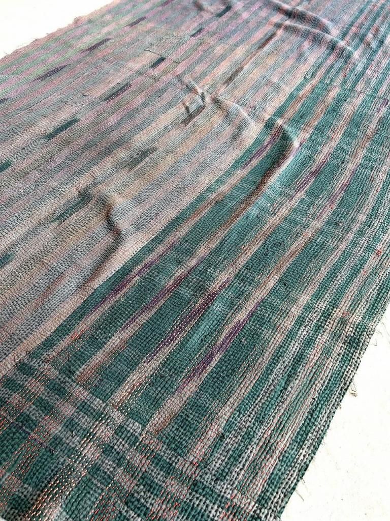 インド北部や東インド ベンガル地方(インド/パキスタン/バングラディッシュ)地方で、1針1針手作業で縫われた伝統手芸工芸 ”Khanta Quilt”です。