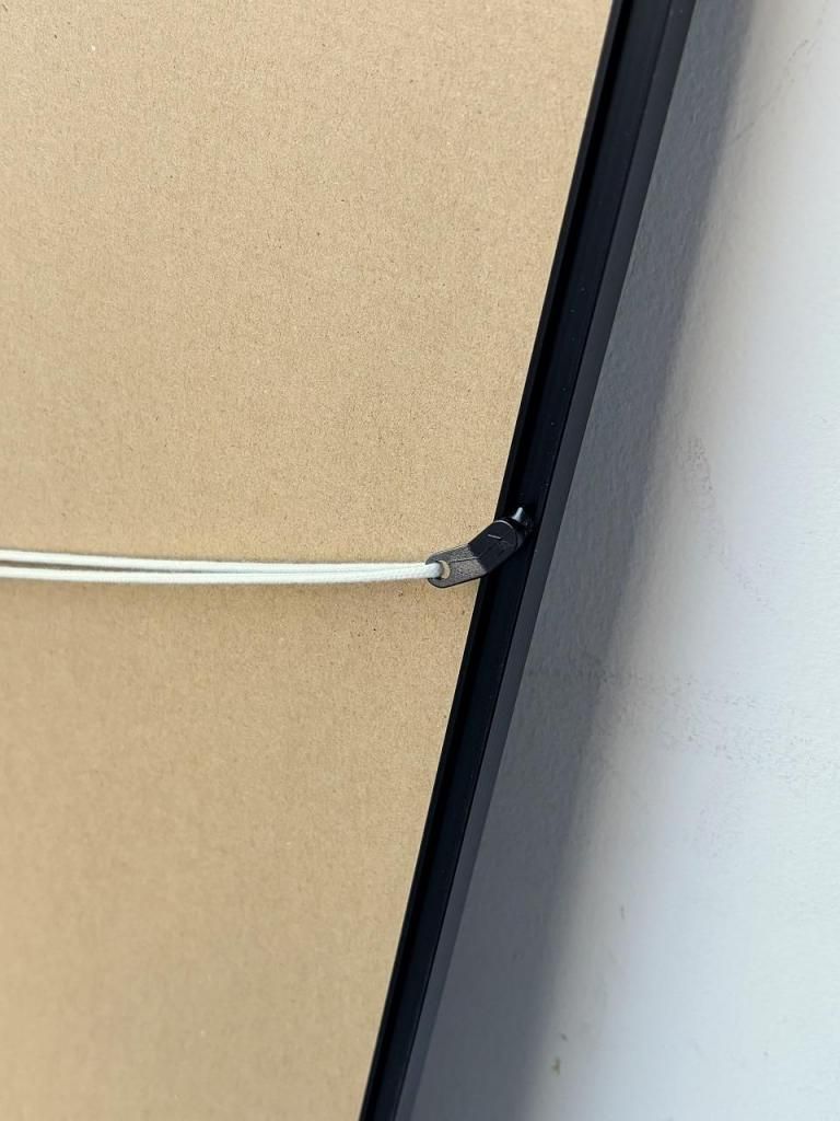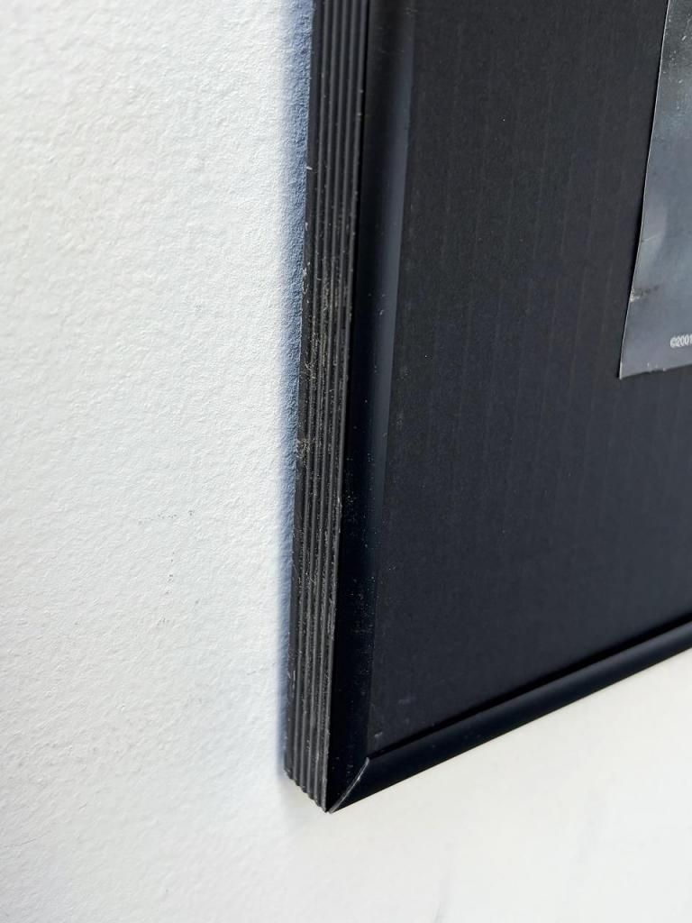 マット台紙とブラックフレームの組み合わせにより、作品自体の色彩が過度に主張しすぎず、